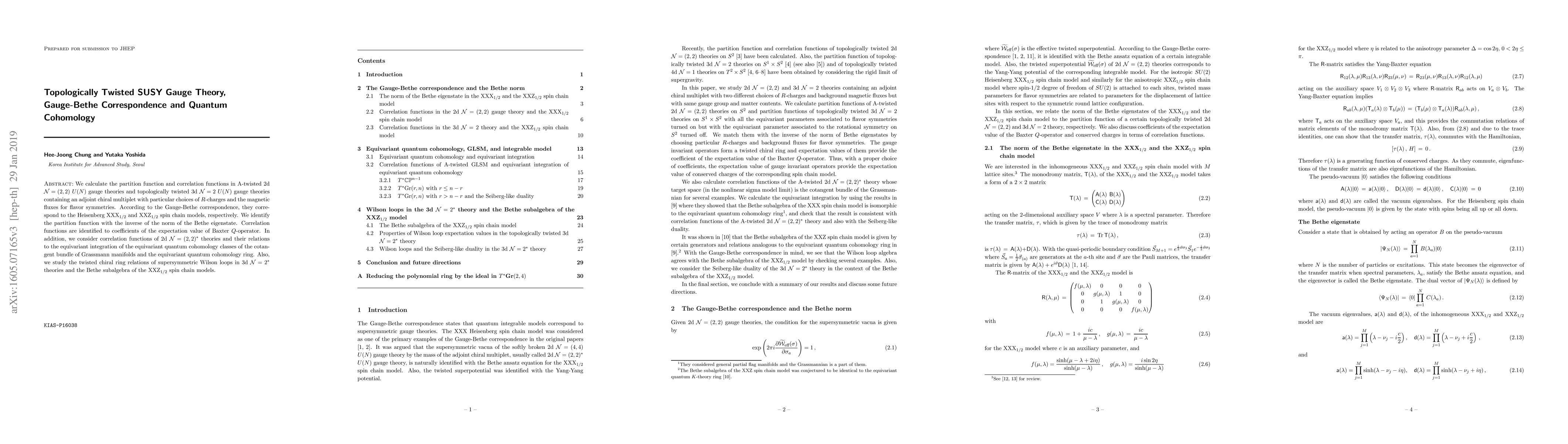 Researchers explored topological twisted SUSY gauge theories and their connection to spin chain models, identifying key correlations and ring relations.