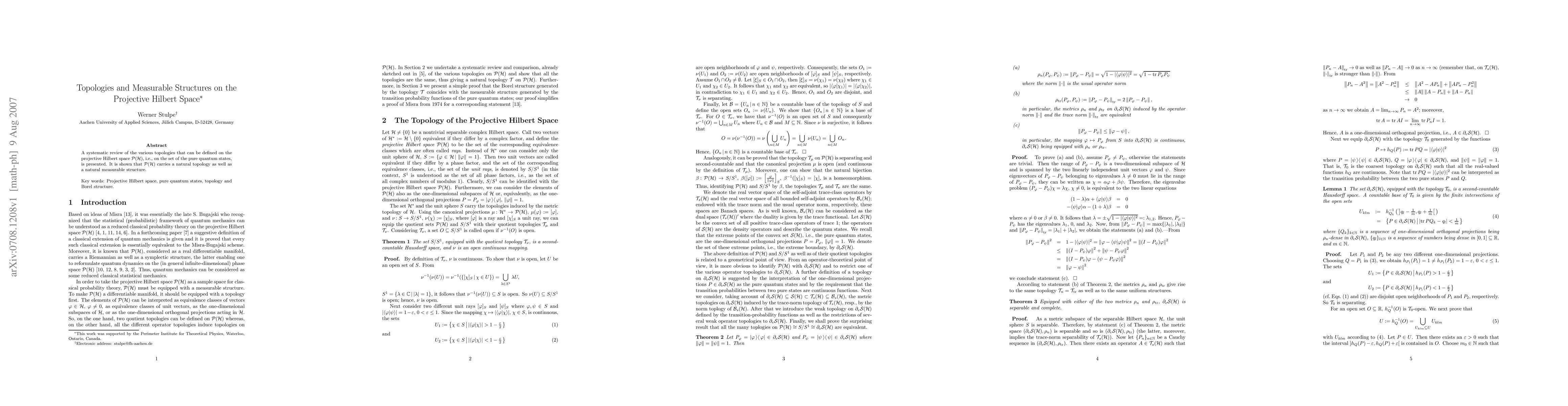 This paper systematically examines the topologies that can be defined on the projective Hilbert space P(H), revealing that it inherently supports both a natural topology and a measurable structure. The findings underscore the intrinsic mathematical properties of the space of pure quantum states.