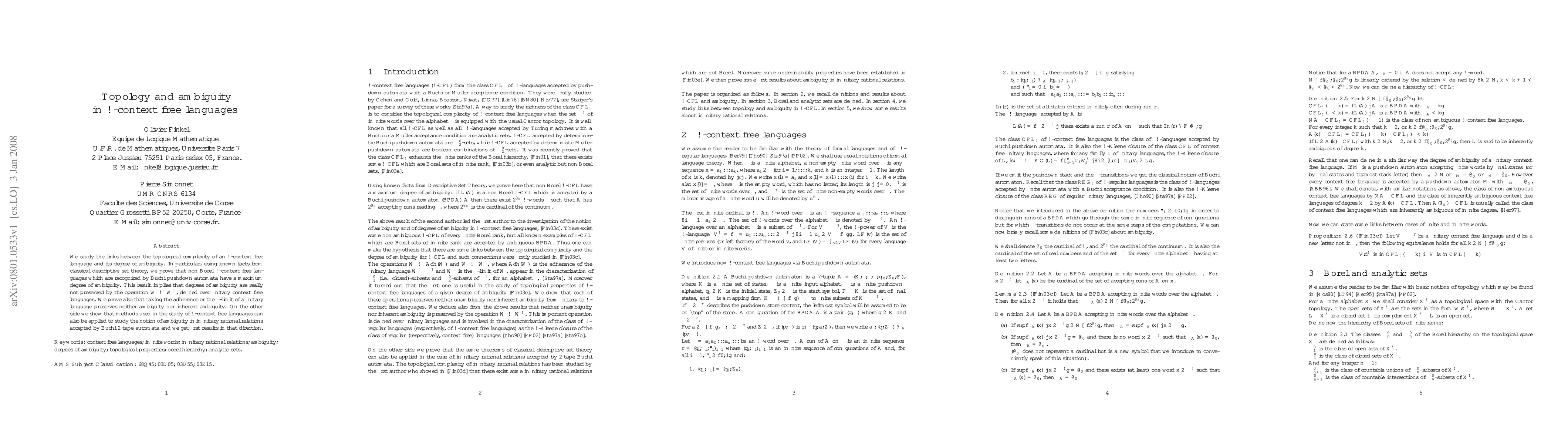 This paper investigates the relationship between the topological complexity of omega context-free languages and their ambiguity levels, proving that non Borel languages recognized by Büchi pushdown automata reach the maximum ambiguity degree. It concludes that ambiguity degrees are not preserved under omega power operations and that neither unambiguity nor inherent ambiguity is preserved by adherence or delta-limit processes.