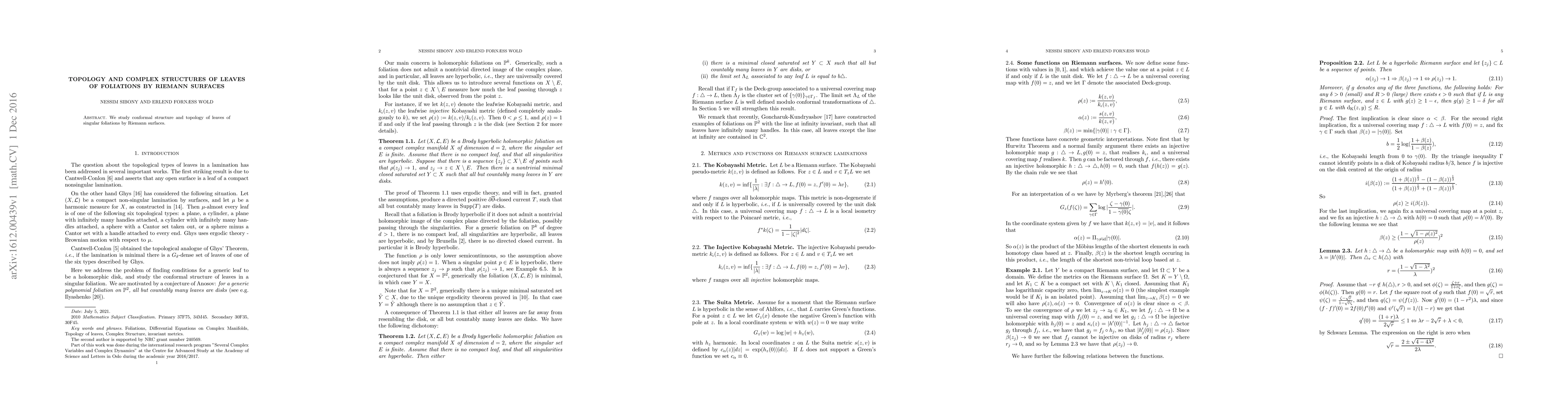 Summary: This paper investigates the conformal structure and topological properties of leaves within singular foliations generated by Riemann surfaces, focusing on their intricate geometric and topological characteristics.