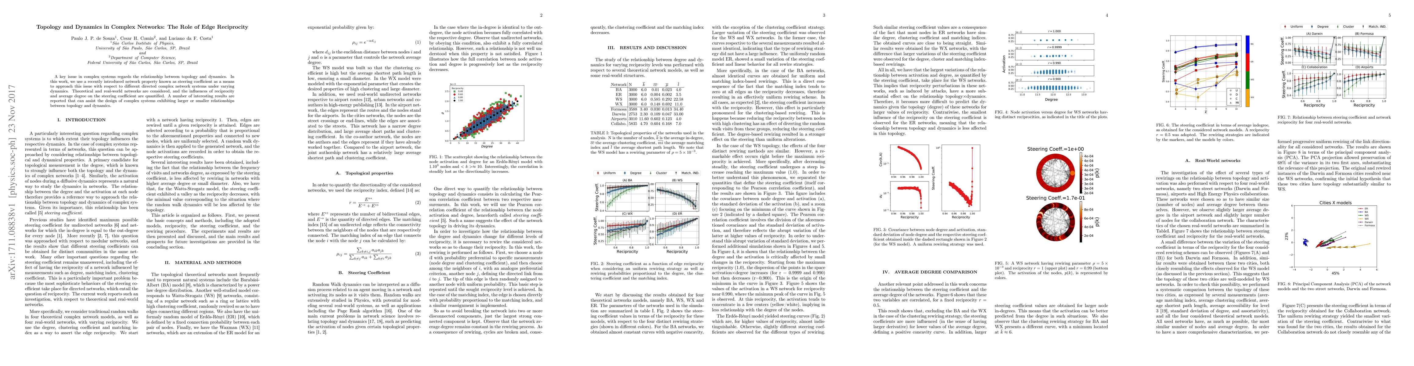 A key issue in complex systems regards the relationship between topology and dynamics. In this work, we use a recently introduced network property known as steering coefficient as a means to approach this issue with respect to different directed complex network systems under varying dynamics. Theoretical and real-world networks are considered, and the influences of reciprocity and average degree on the steering coefficient are quantified. A number of interesting results are reported that can assist the design of complex systems exhibiting larger or smaller relationships between topology and dynamics.