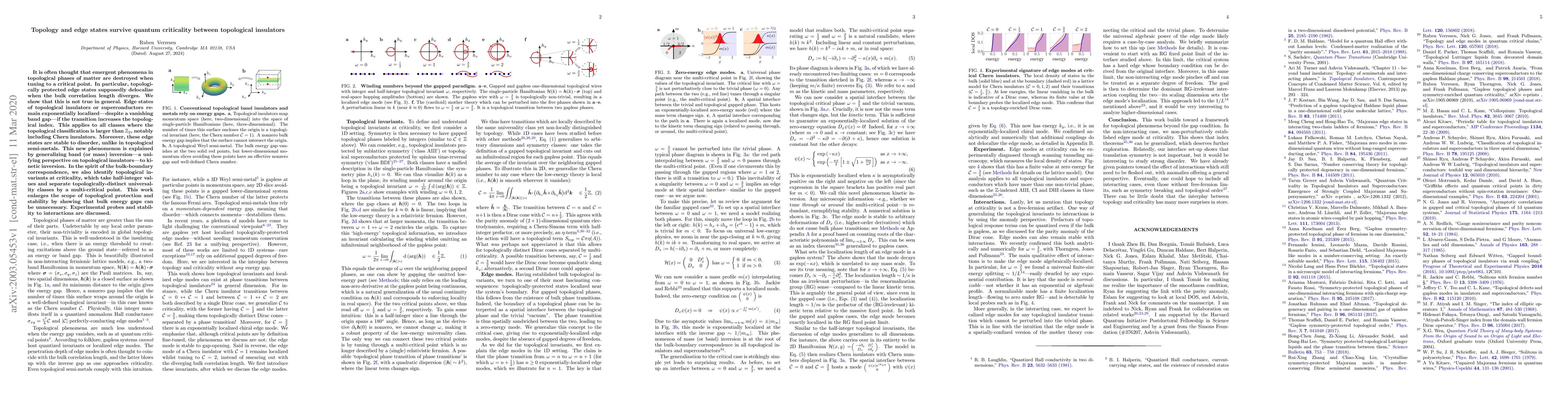It is often thought that emergent phenomena in topological phases of matter are destroyed when tuning to a critical point. In particular, topologically protected edge states supposedly delocalize when the bulk correlation length diverges. We show that this is not true in general. Edge states of topological insulators or superconductors remain exponentially localized---despite a vanishing band gap---if the transition increases the topological index. This applies to all classes where the topological classification is larger than $Z_2$, notably including Chern insulators. Moreover, these edge states are stable to disorder, unlike in topological semi-metals. This new phenomenon is explained by generalizing band (or mass) inversion---a unifying perspective on topological insulators---to kinetic inversion. In the spirit of the bulk-boundary correspondence, we also identify topological invariants at criticality, which take half-integer values and separate topologically-distinct universality classes by a multi-critical point. This work enlarges the scope of topological protection and stability by showing that bulk energy gaps can be unnecessary. Experimental probes and stability to interactions are discussed.