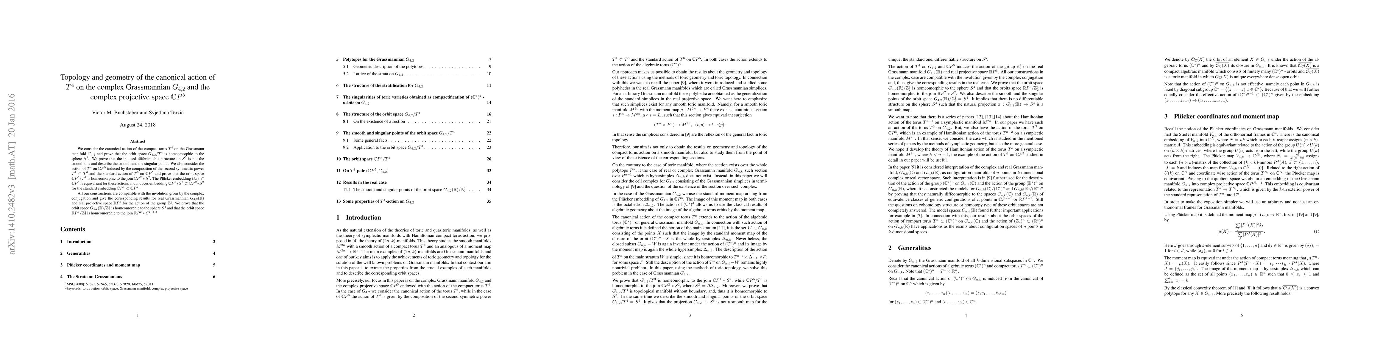 We consider the canonical action of the compact torus $T^4$ on the Grassmann manifold $G_{4,2}$ and prove that the orbit space $G_{4,2}/T^4$ is homeomorphic to the sphere $S^5$. We prove that the induced differentiable structure on $S^5$ is not the smooth one and describe the smooth and the singular points. We also consider the action of $T^4$ on $CP^5$ induced by the composition of the second symmetric power $T^4\subset T^6$ and the standard action of $T^6$ on $CP^5$ and prove that the orbit space $CP^5/T^4$ is homeomorphic to the join $CP^2\ast S^2$. The Pl\"ucker embedding $G_{4,2}\subset CP^5$ is equivariant for these actions and induces embedding $CP^1\ast S^2 \subset CP^2 \ast S^2$ for the standard embedding $CP^1 \subset CP^2$. All our constructions are compatible with the involution given by the complex conjugation and give the corresponding results for the real Grassmannian $G_{4,2}(R)$ and the real projective space $RP^5$ for the action of the group $Z _{2}^{4}$. We prove that the orbit space $G_{4,2}(R)/Z _{2}^{4}$ is homeomorphic to the sphere $S^4$ and that the orbit space $RP^{5}/Z _{2}^{4}$ is homeomorphic to the join $RP^2\ast S^2$.