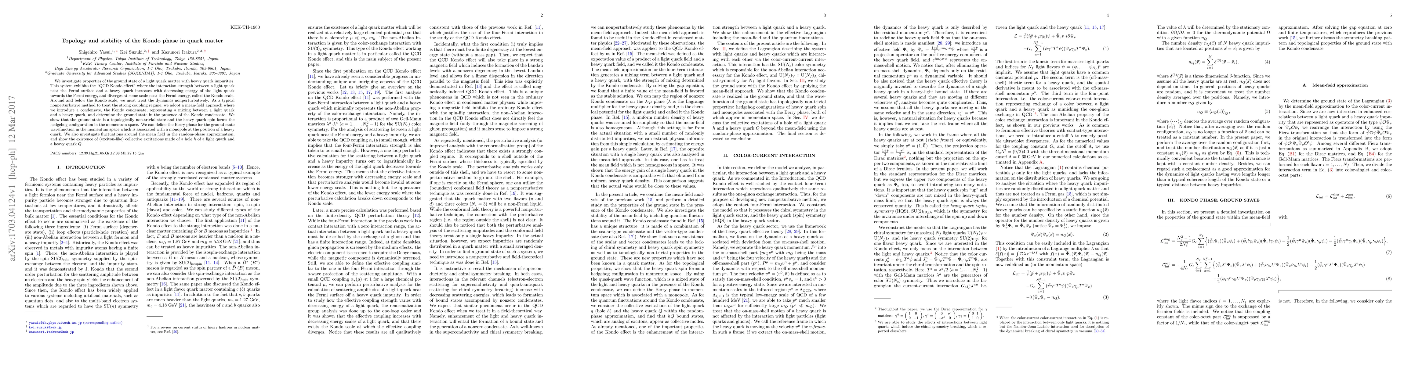 This paper explores the topological and stability properties of the ground state in quark matter with heavy quark impurities, revealing a "QCD Kondo effect." It employs a mean-field approach to demonstrate a topologically non-trivial state and hedgehog configuration of heavy quark spin, alongside collective exciton-like excitations.