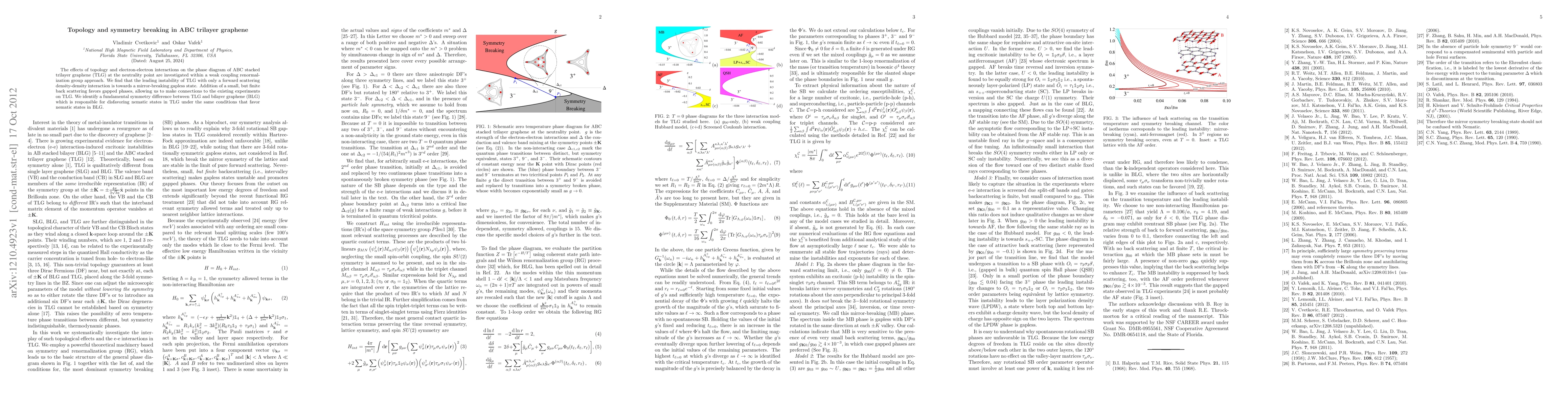 This study investigates how topology and electron-electron interactions influence the phase diagram of ABC trilayer graphene at the neutrality point, revealing a leading instability towards a gapless state with forward scattering. The addition of back scattering promotes gapped phases, and it identifies a fundamental symmetry difference that prevents nematic states in trilayer graphene compared to bilayer graphene.