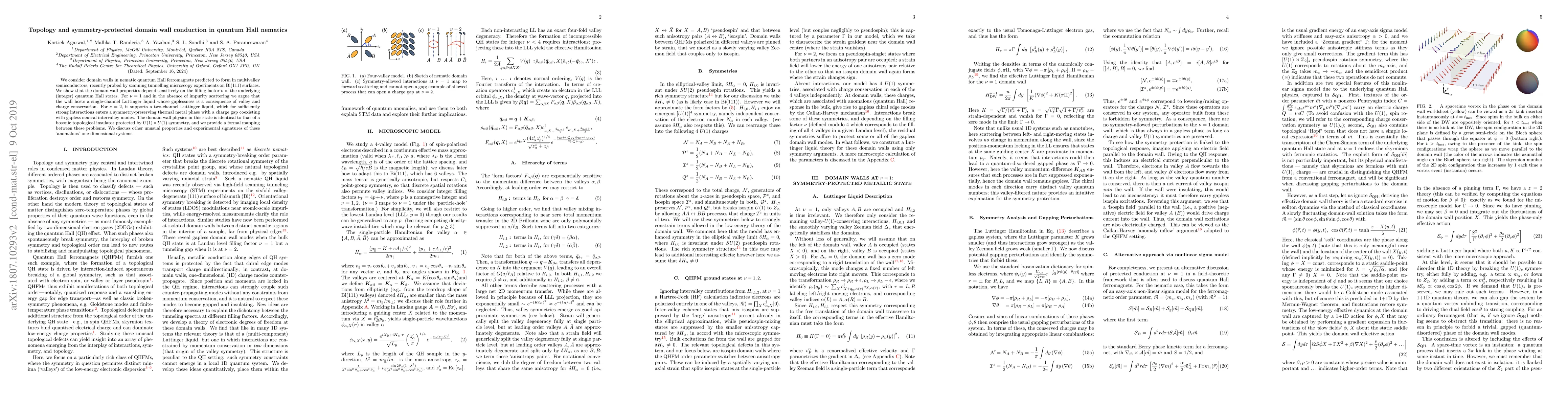 We consider domain walls in nematic quantum Hall ferromagnets predicted to form in multivalley semiconductors, recently probed by scanning tunnelling microscopy experiments on Bi(111) surfaces. We show that the domain wall properties depend sensitively on the filling factor $\nu$ of the underlying (integer) quantum Hall states. For $\nu=1$ and in the absence of impurity scattering we argue that the wall hosts a single-channel Luttinger liquid whose gaplessness is a consequence of valley and charge conservation. For $\nu=2$, it supports a two-channel Luttinger liquid, which for sufficiently strong interactions enters a symmetry-preserving thermal metal phase with a charge gap coexisting with gapless neutral intervalley modes. The domain wall physics in this state is identical to that of a bosonic topological insulator protected by $U(1)\times U(1)$ symmetry, and we provide a formal mapping between these problems. We discuss other unusual properties and experimental signatures of these `anomalous' one-dimensional systems.