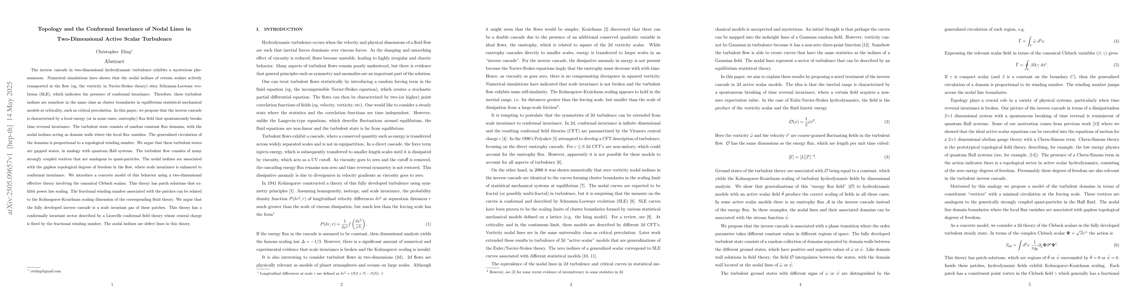 Researchers propose a new theory explaining how nodal lines in two-dimensional hydrodynamic turbulence behave under conformal invariance, linking it to quantum Hall systems and proposing a scale-invariant gas of 'patches' that make up the turbulent flow.