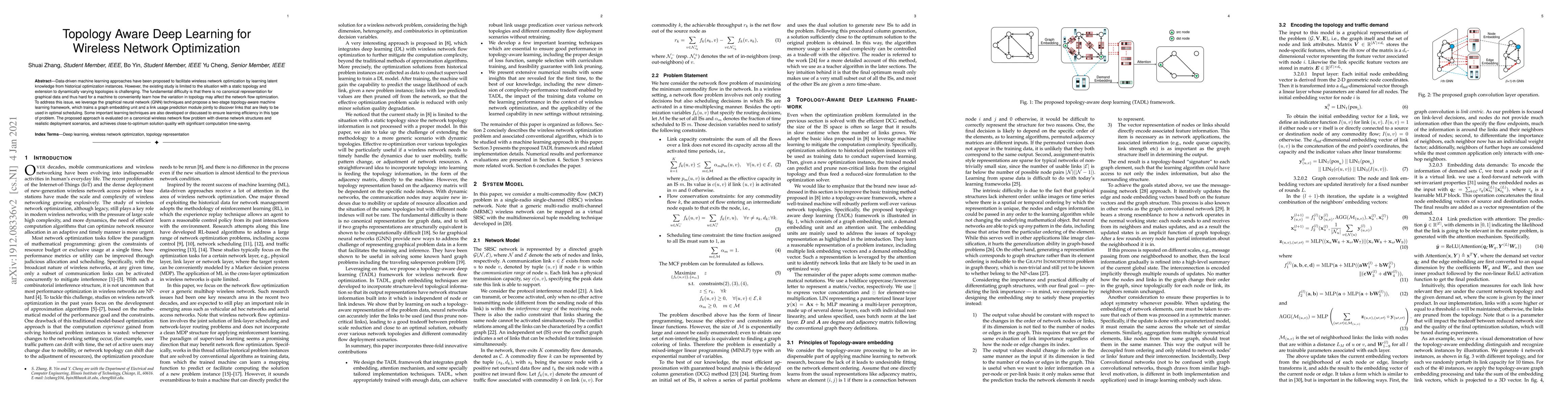 This paper proposes a topology-aware deep learning framework (TALF) to optimize wireless networks by incorporating graph topological information into vector representations. The framework combines graph embedding and deep feed-forward networks to achieve better generalization and efficiency, saving up to 60% computation time while maintaining over 90% solution quality.