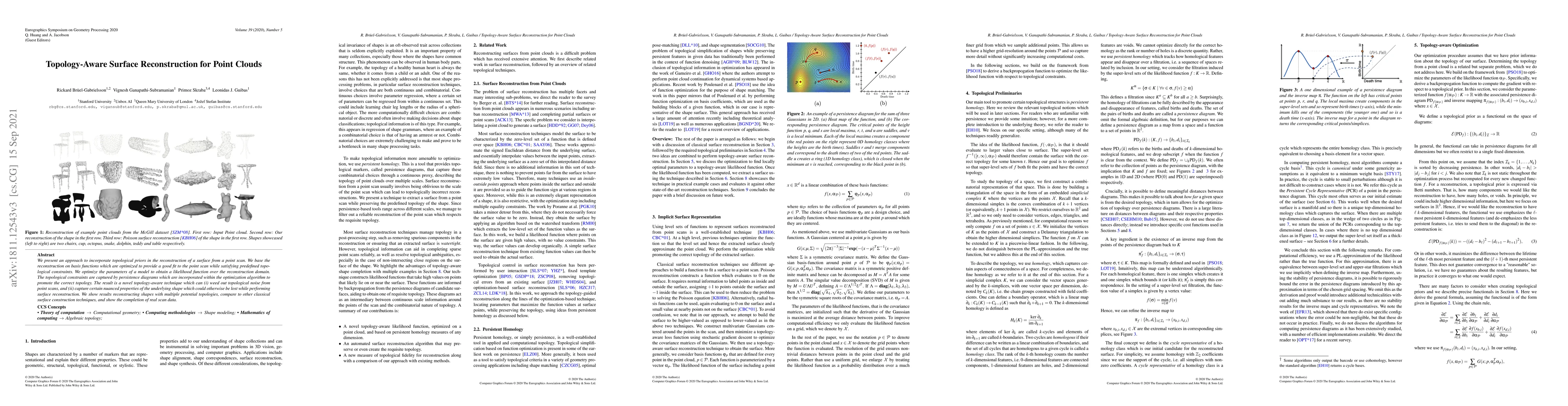 A new approach to surface reconstruction from point clouds uses topological priors to filter out noise and capture nuanced shape properties. This method produces accurate results on real scan data and surpasses classical techniques in certain cases.