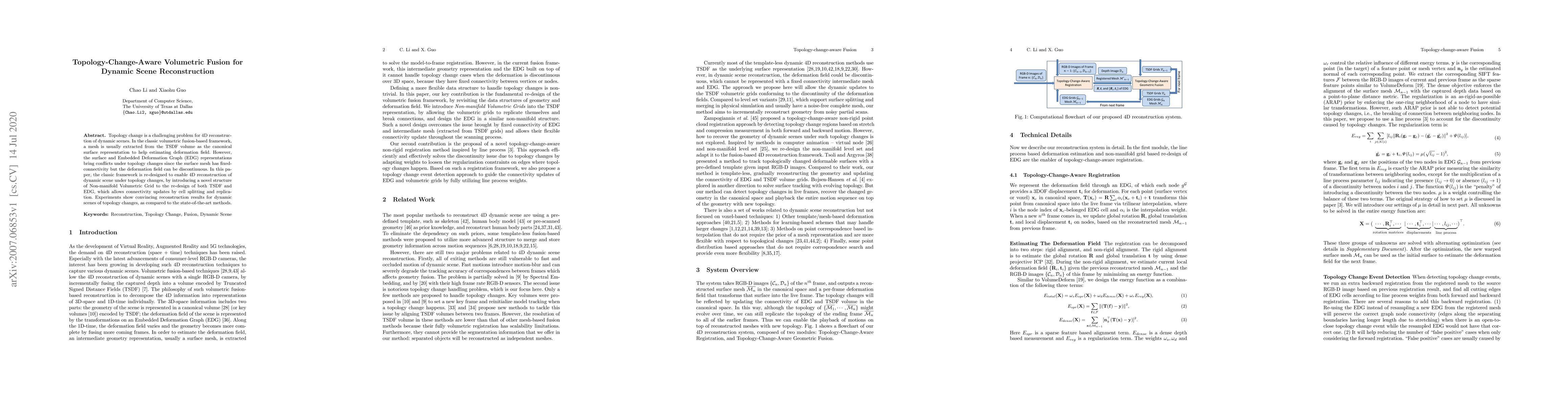 This paper proposes a novel topology-change-aware volumetric fusion framework for dynamic scene reconstruction using a Non-manifold Volumetric Grid to handle connectivity updates via cell splitting and replication, achieving superior results for scenes with topology changes compared to existing methods.
