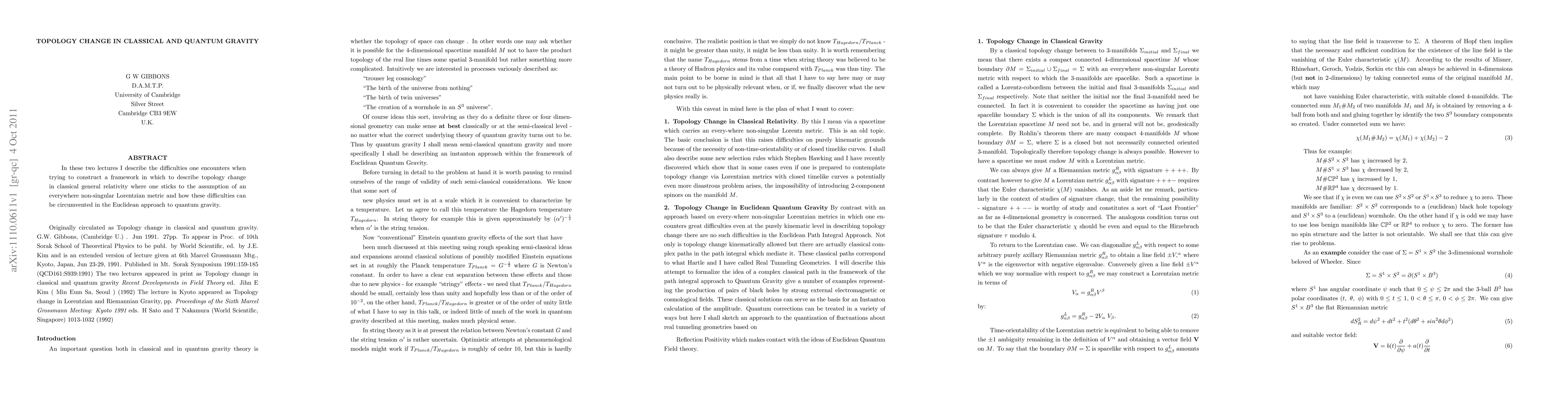 This paper discusses the challenges of incorporating topology change in classical general relativity while maintaining a non-singular metric, and explores how these issues are addressed through the Euclidean approach in quantum gravity.