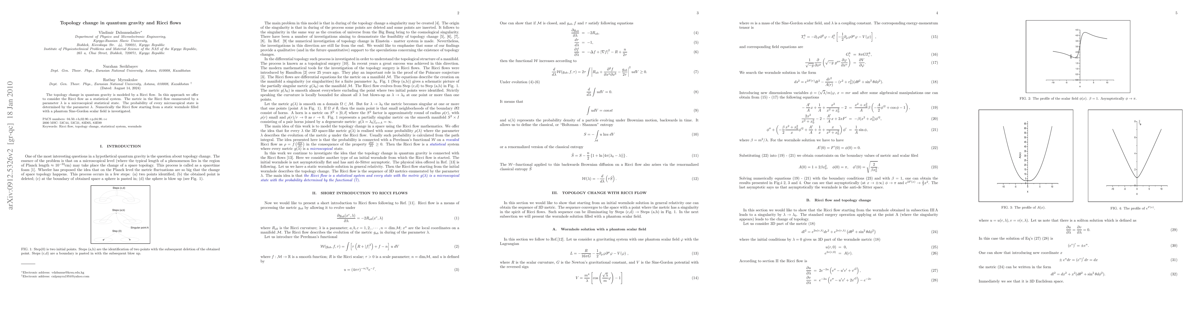 This paper models topology change in quantum gravity using Ricci flows, treating them as a statistical system where the metric is a microscopic state with probabilities determined by a parameter $\lambda$. Numerical investigations of Ricci flow starting from a static wormhole filled with a phantom Sine-Gordon scalar field are conducted.