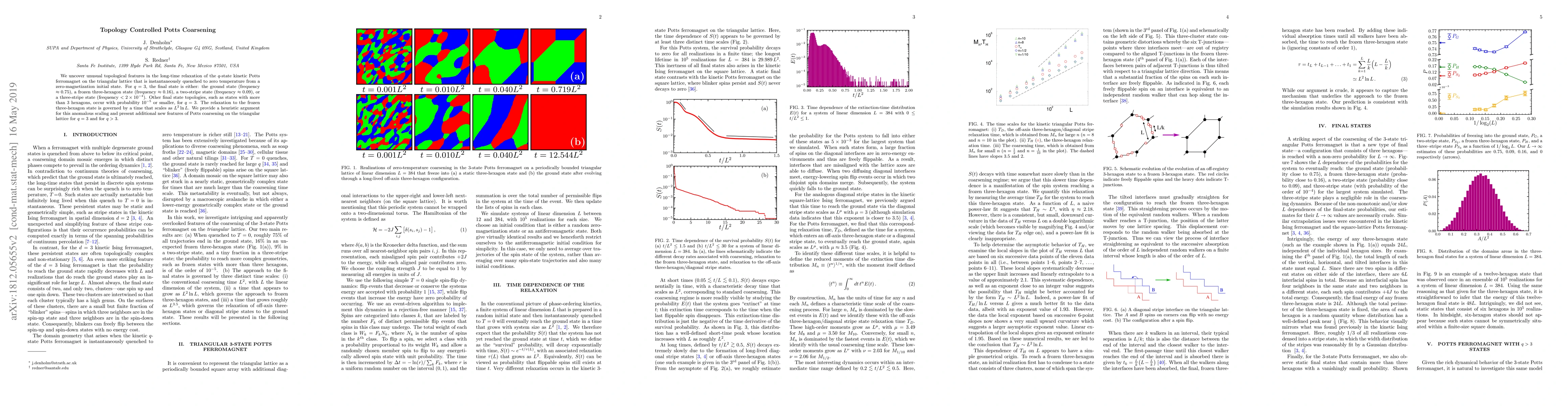 Understanding the topological features and relaxation dynamics of the Potts ferromagnet on various lattices contributes to the broader field of statistical physics, particularly in the study of phase transitions and coarsening processes.