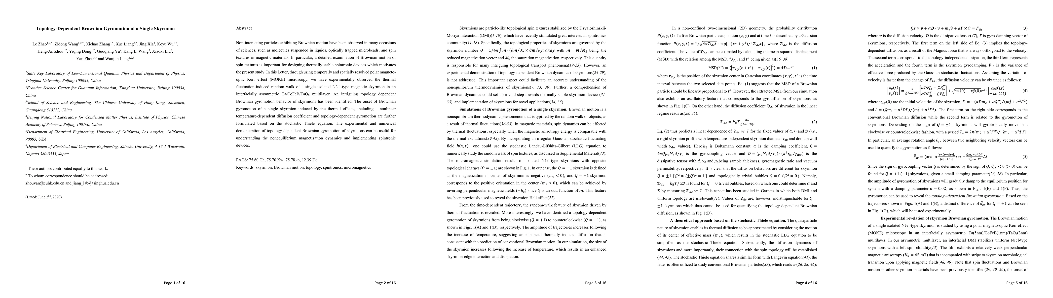 This paper experimentally observes the thermal fluctuation-induced random walk of a single magnetic skyrmion using magneto-optic Kerr effect microscopy, revealing a topology-dependent Brownian gyromotion behavior. The study formulates the nonlinear temperature-dependent diffusion and gyromotion based on the stochastic Thiele equation, providing insights for spintronic devices.