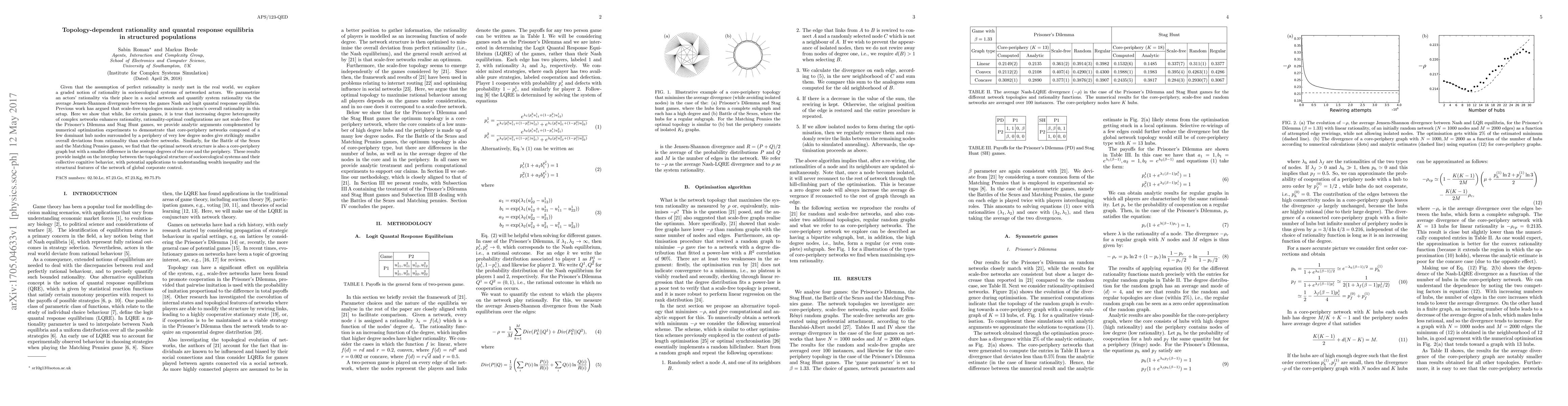 Given that the assumption of perfect rationality is rarely met in the real world, we explore a graded notion of rationality in socioecological systems of networked actors. We parametrize an actors' rationality via their place in a social network and quantify system rationality via the average Jensen-Shannon divergence between the games Nash and logit quantal response equilibria. Previous work has argued that scale-free topologies maximize a system's overall rationality in this setup. Here we show that while, for certain games, it is true that increasing degree heterogeneity of complex networks enhances rationality, rationality-optimal configurations are not scale-free. For the Prisoner's Dilemma and Stag Hunt games, we provide analytic arguments complemented by numerical optimization experiments to demonstrate that core-periphery networks composed of a few dominant hub nodes surrounded by a periphery of very low degree nodes give strikingly smaller overall deviations from rationality than scale-free networks. Similarly, for the Battle of the Sexes and the Matching Pennies games, we find that the optimal network structure is also a core-periphery graph but with a smaller difference in the average degrees of the core and the periphery. These results provide insight on the interplay between the topological structure of socioecological systems and their collective cognitive behavior, with potential applications to understanding wealth inequality and the structural features of the network of global corporate control.