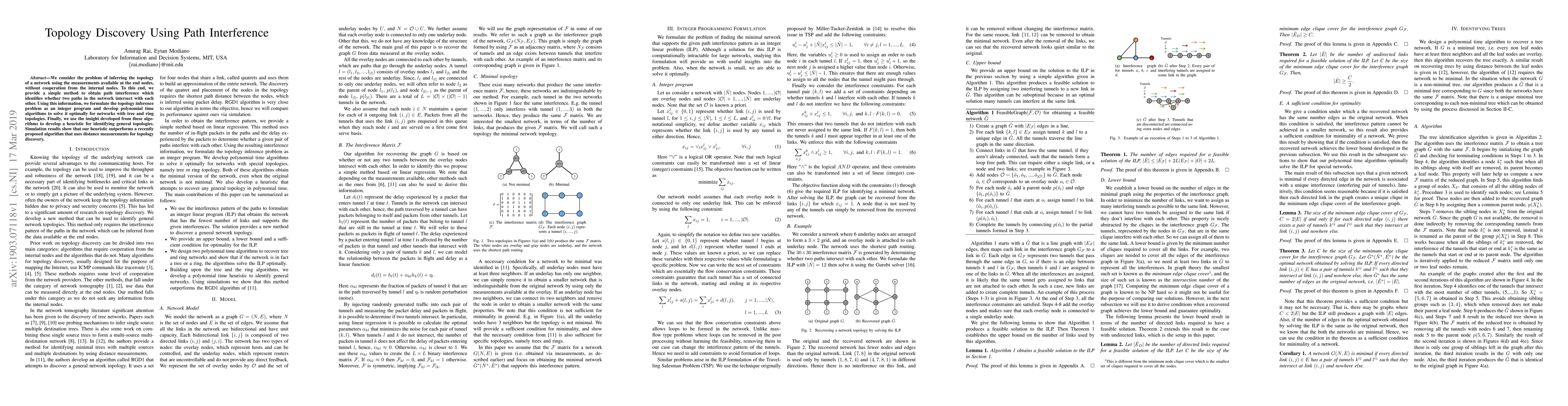 This paper proposes a method for inferring network topology through path interference without internal node cooperation, formulates it as an integer program, and develops polynomial time algorithms for tree and ring topologies, along with a heuristic for general topologies, which outperforms existing distance-based methods.