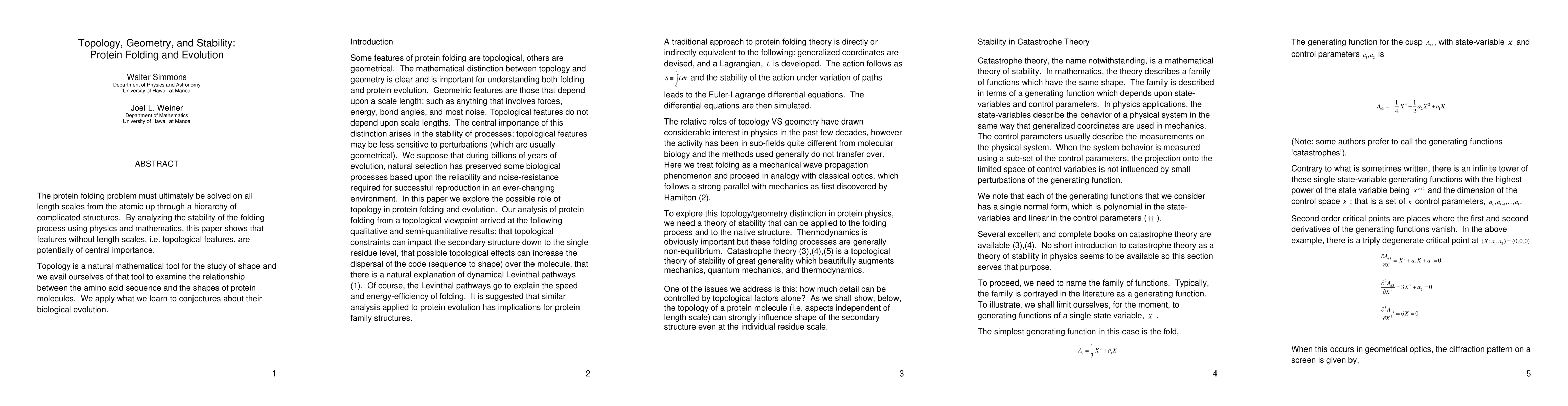 This paper explores the protein folding problem by integrating topology, geometry, and stability, emphasizing the significance of topological features in understanding protein structure and evolution. It suggests that topology provides a valuable framework for linking amino acid sequences to protein shapes and offers insights into biological evolution.
