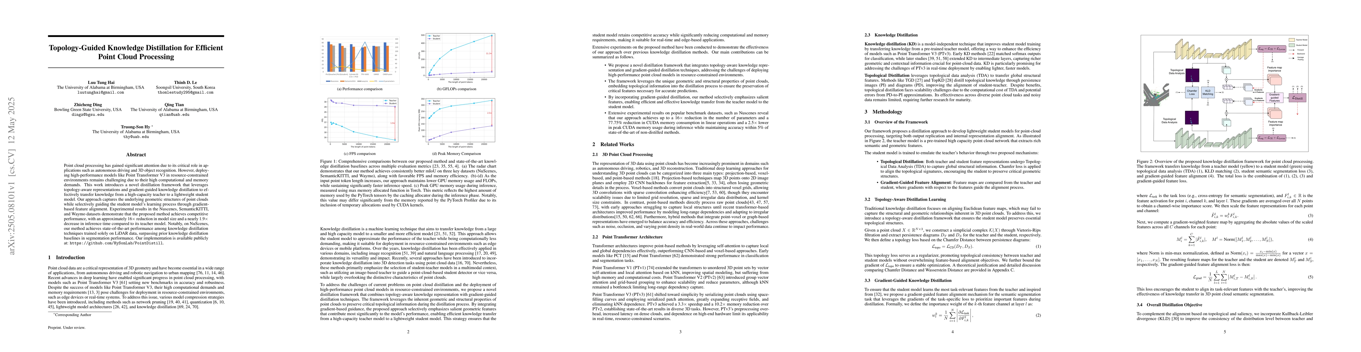 The research introduces a topology-guided knowledge distillation framework for efficient point cloud processing, leveraging topology-aware representations and gradient-guided feature alignment to transfer knowledge from a high-capacity teacher model to a lightweight student model.