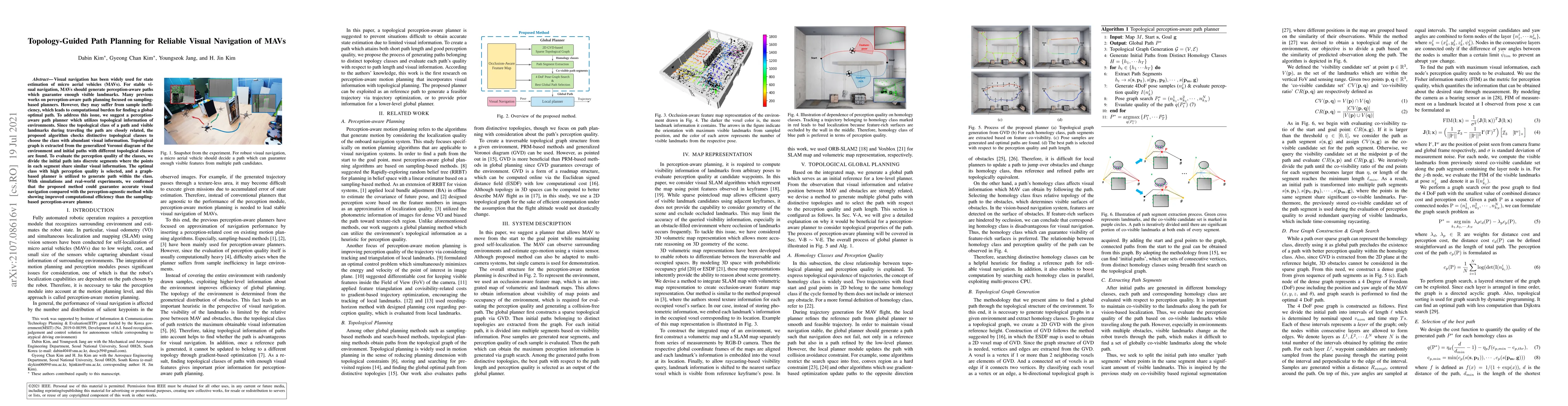 This paper proposes a topology-guided path planner for micro aerial vehicles (MAVs) that leverages topological information to generate perception-aware paths with sufficient visible landmarks, ensuring reliable visual navigation while improving computational efficiency compared to sampling-based planners. The method uses topological graphs derived from generalized Voronoi diagrams to select optimal path classes and segments for high perception quality.