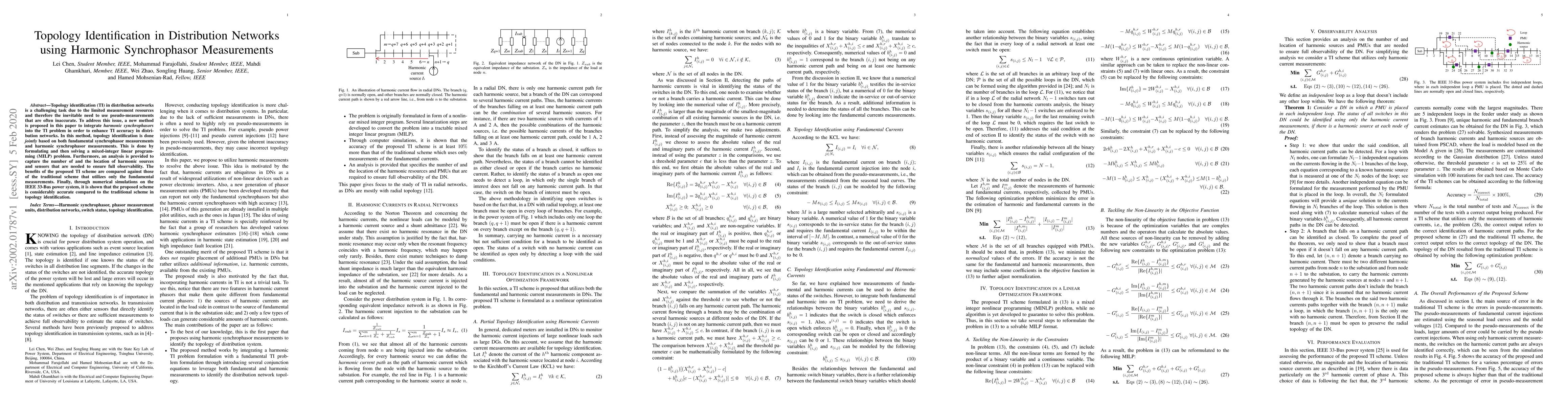 Topology identification (TI) in distribution networks is a challenging task due to the limited measurement resources and therefore the inevitable need to use pseudo-measurements that are often inaccurate. To address this issue, a new method is proposed in this paper to integrate harmonic synchrophasors into the TI problem in order to enhance TI accuracy in distribution networks. In this method, topology identification is done jointly based on both fundamental synchrophasor measurements and harmonic synchrophasor measurements. This is done by formulating and then solving a mixed-integer linear programming (MILP) problem. Furthermore, an analysis is provided to capture the number of and the location of harmonic sources and sensors that are needed to ensure full observability. The benefits of the proposed TI scheme are compared against those of the traditional scheme that utilizes only the fundamental measurements. Finally, through numerical simulations on the IEEE 33-Bus power system, it is shown that the proposed scheme is considerably accurate compared to the traditional scheme in topology identification.