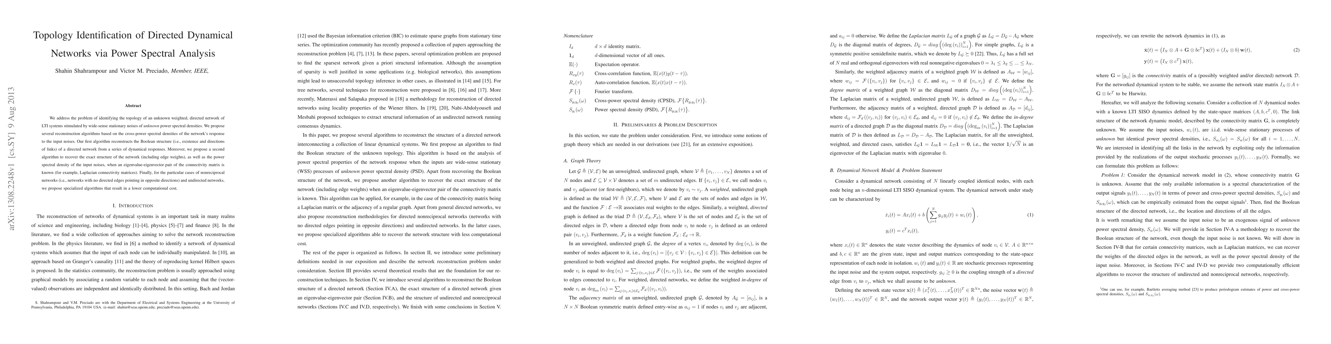 Researchers propose algorithms to identify the topology of a directed network from its responses to input noises using power spectral analysis, enabling recovery of network structure and input noise characteristics.