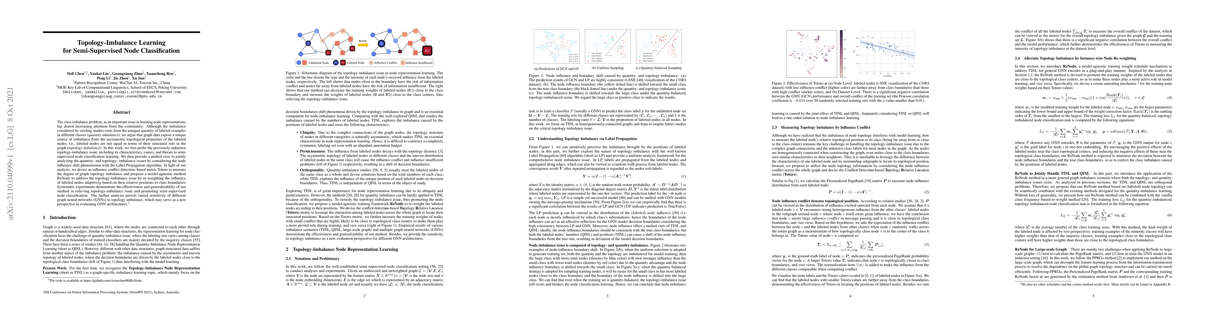 This paper explores the novel concept of topology imbalance in graph data, distinct from quantity imbalance, and proposes a method to address it for semi-supervised node classification. It introduces Totoro for measuring topology imbalance and ReNode for adaptively re-weighting labeled nodes, demonstrating improved classification performance.