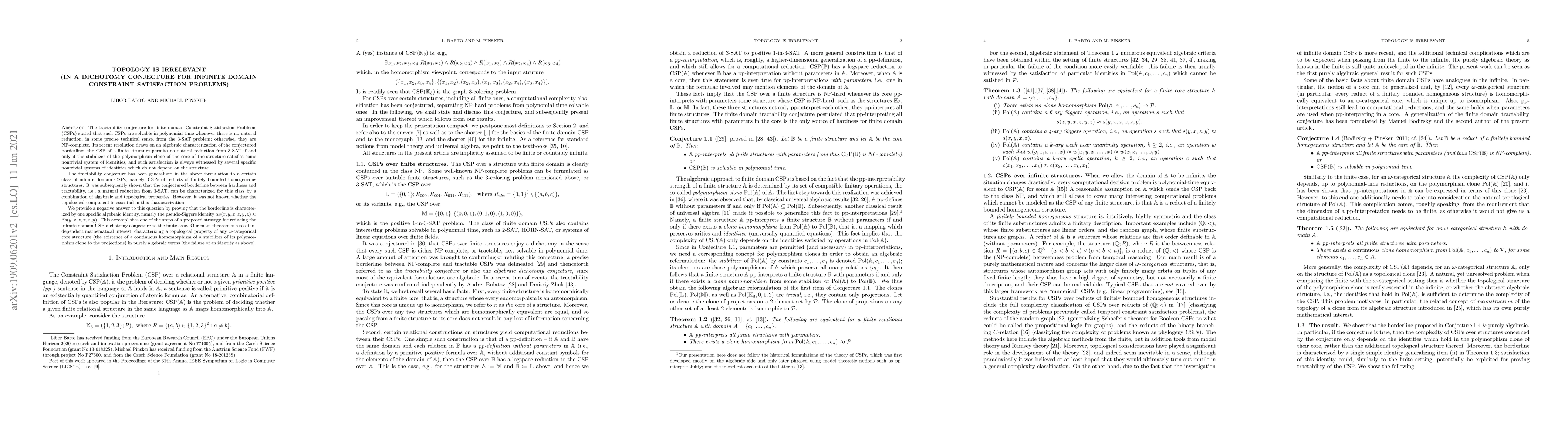 This paper demonstrates that the topological component is unnecessary for characterizing the boundary between tractable and intractable infinite domain CSPs, showing that the pseudo-Siggers identity alone suffices. The result supports reducing the infinite domain CSP dichotomy conjecture to the finite domain CSP case.