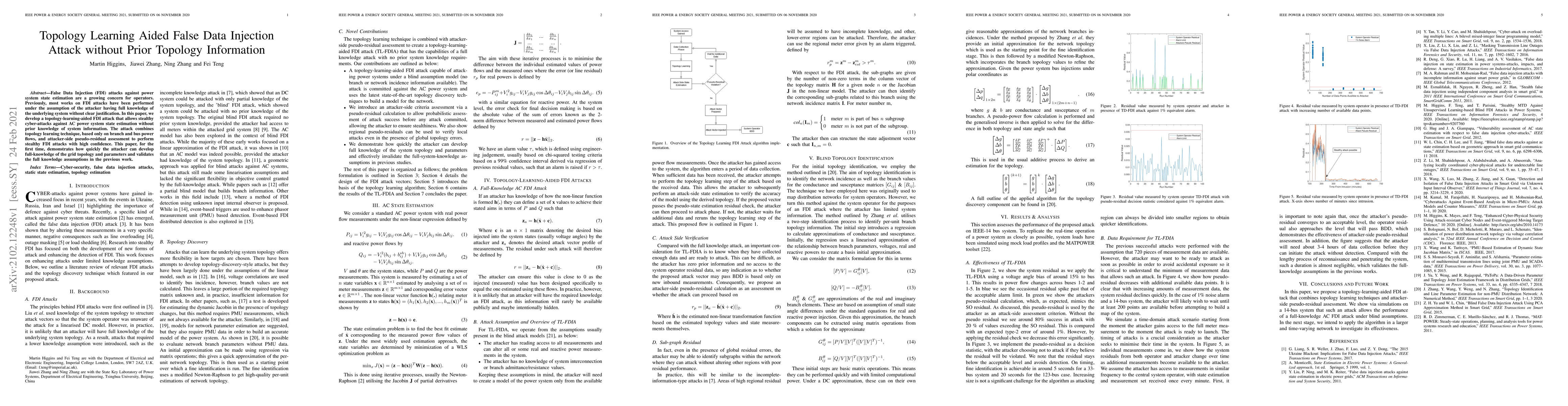 This paper develops a novel topology-learning-aided False Data Injection attack for power system state estimation, enabling stealthy cyber-attacks without prior knowledge of the system. It combines topology learning from power flows and pseudo-residual assessment to achieve high confidence in attacks.
