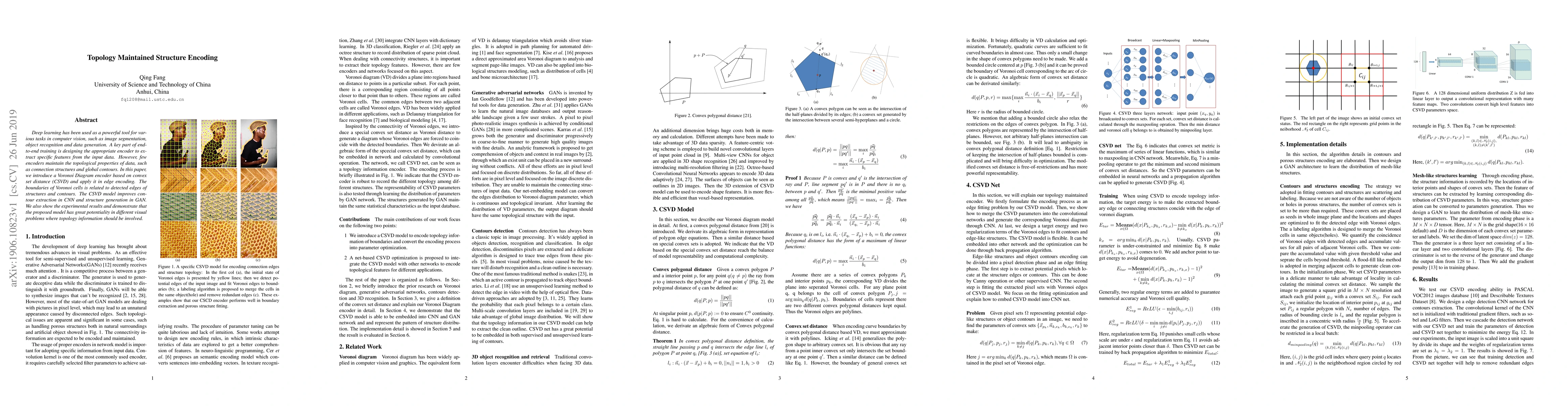 Deep learning has been used as a powerful tool for various tasks in computer vision, such as image segmentation, object recognition and data generation. A key part of end-to-end training is designing the appropriate encoder to extract specific features from the input data. However, few encoders maintain the topological properties of data, such as connection structures and global contours. In this paper, we introduce a Voronoi Diagram encoder based on convex set distance (CSVD) and apply it in edge encoding. The boundaries of Voronoi cells is related to detected edges of structures and contours. The CSVD model improves contour extraction in CNN and structure generation in GAN. We also show the experimental results and demonstrate that the proposed model has great potentiality in different visual problems where topology information should be involved.