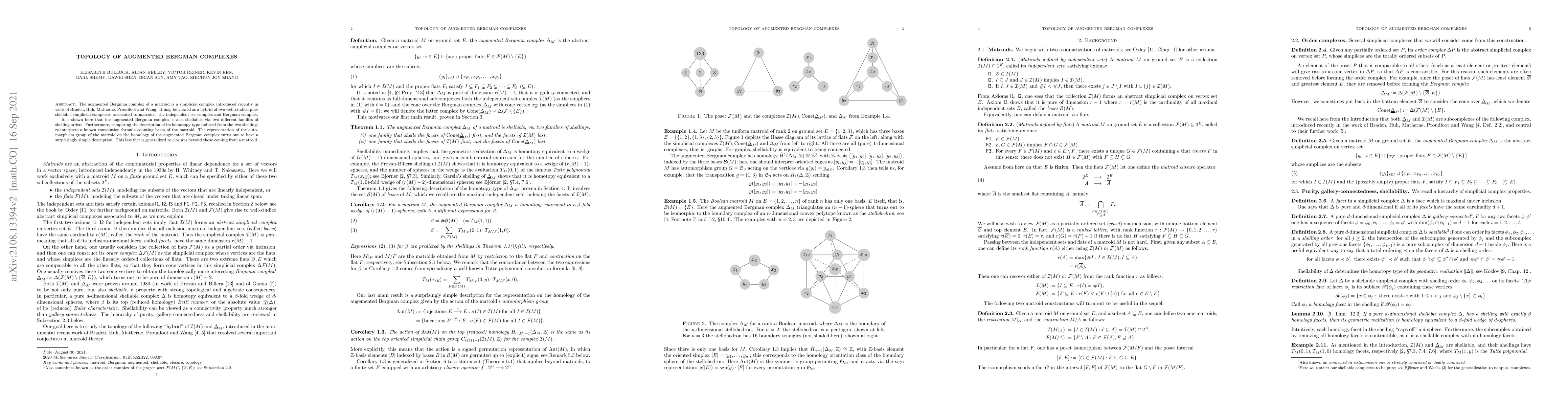 This paper investigates the topology of the augmented Bergman complex associated with matroids, showing its shellability through two distinct shelling orders. It further uses these shellings to reinterpret a known convolution formula counting matroid bases and reveals a simple representation of the matroid's automorphism group on the complex's homology, which is extended to broader closures.