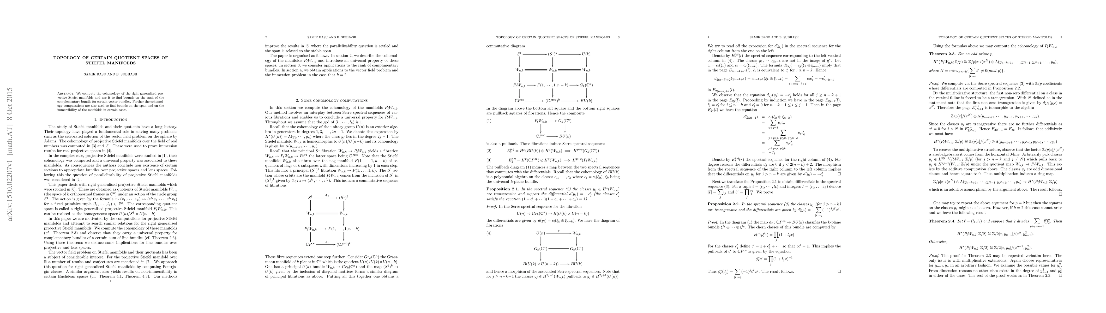 We compute the cohomology of the right generalised projective Stiefel manifolds and use it to find bounds on the rank of the complementary bundle for certain vector bundles. Further the cohomology computations are also used to find bounds on the span and on the immersibility of the manifolds in certain cases.