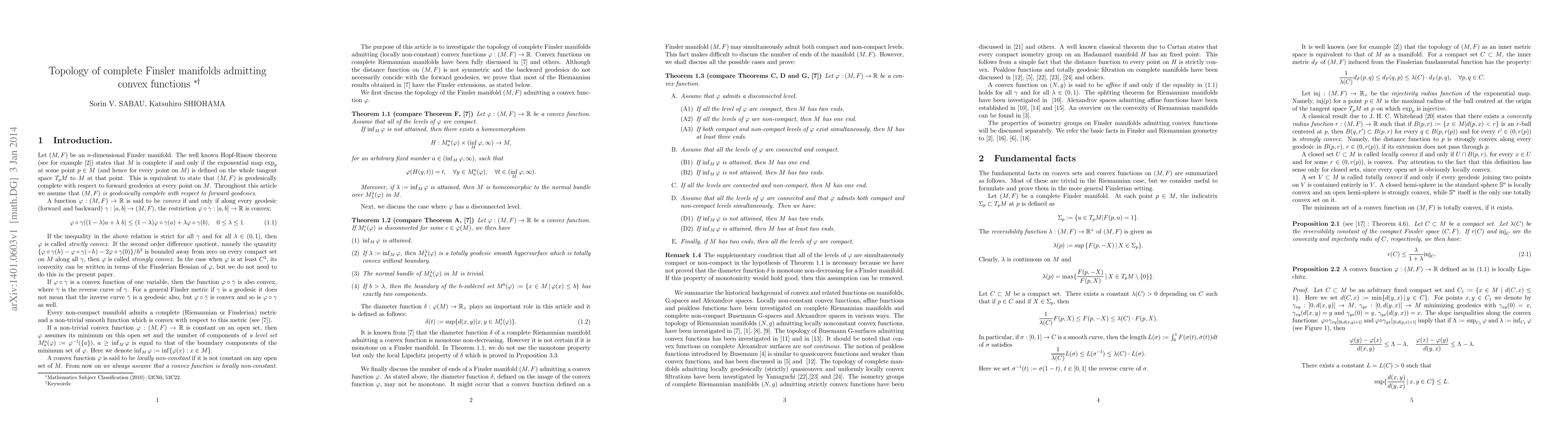 Summary: This paper investigates the topological properties of complete Finsler manifolds that allow the existence of convex functions, exploring how these structures influence the manifold's geometry and topology.