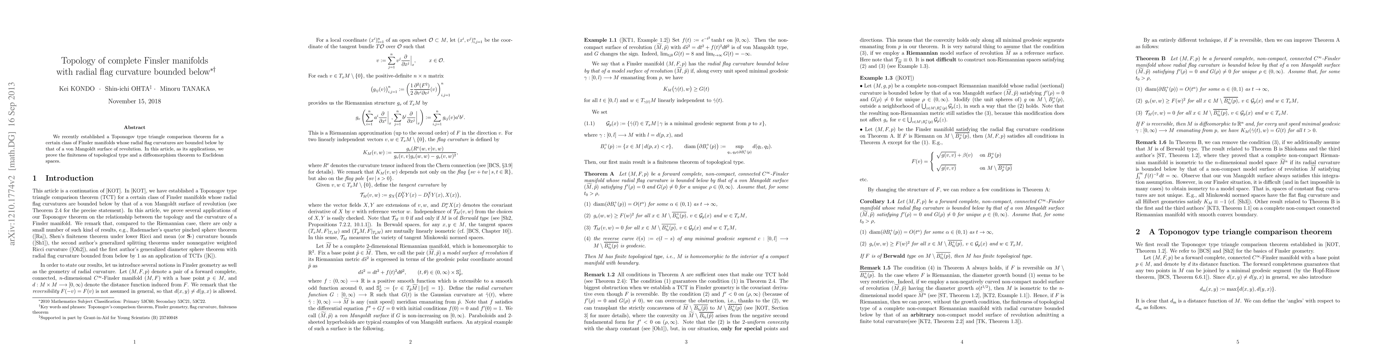 The paper introduces a Toponogov type triangle comparison theorem for Finsler manifolds and proves finiteness of topological type and diffeomorphism theorems under specific conditions.