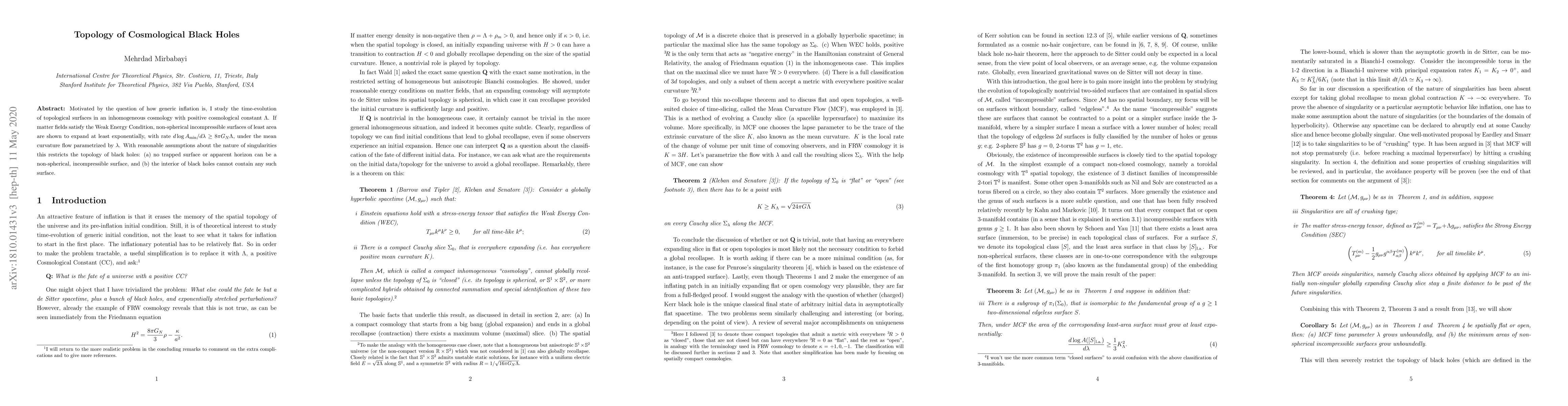 Motivated by the question of how generic inflation is, I study the time-evolution of topological surfaces in an inhomogeneous cosmology with positive cosmological constant $\Lambda$. If matter fields satisfy the Weak Energy Condition, non-spherical incompressible surfaces of least area are shown to expand at least exponentially, with rate $d \log A_{\rm min}/d\lambda \geq 8\pi G_N\Lambda$, under the mean curvature flow parametrized by $\lambda$. With reasonable assumptions about the nature of singularities this restricts the topology of black holes: (a) no trapped surface or apparent horizon can be a non-spherical, incompressible surface, and (b) the interior of black holes cannot contain any such surface.