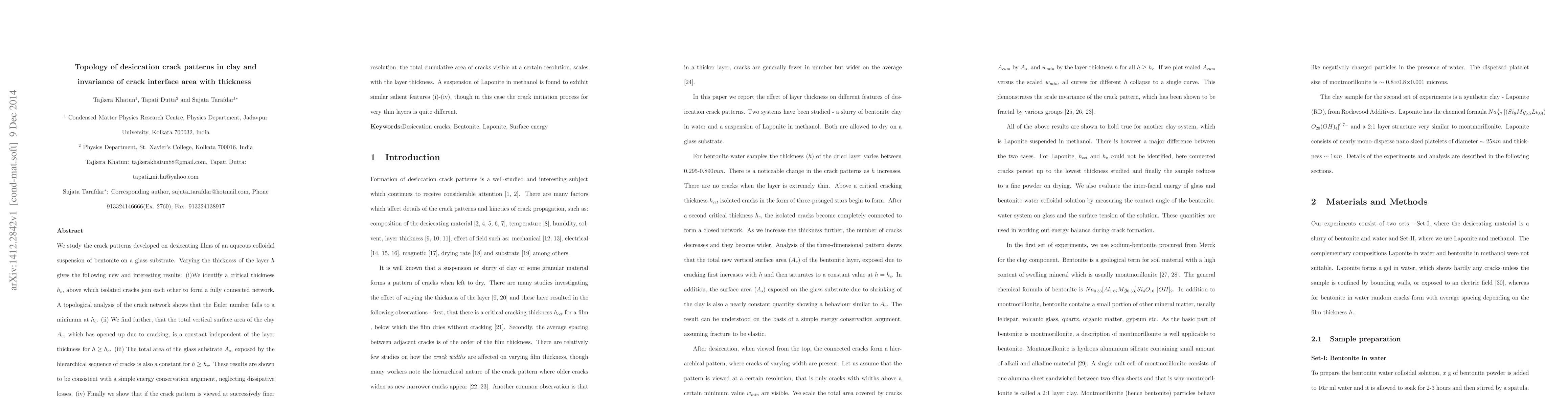 This study investigates desiccation crack patterns in clay films, revealing a critical thickness above which cracks form a connected network and the total vertical surface area of the clay remains constant, independent of thickness. The findings are consistent with energy conservation principles.
