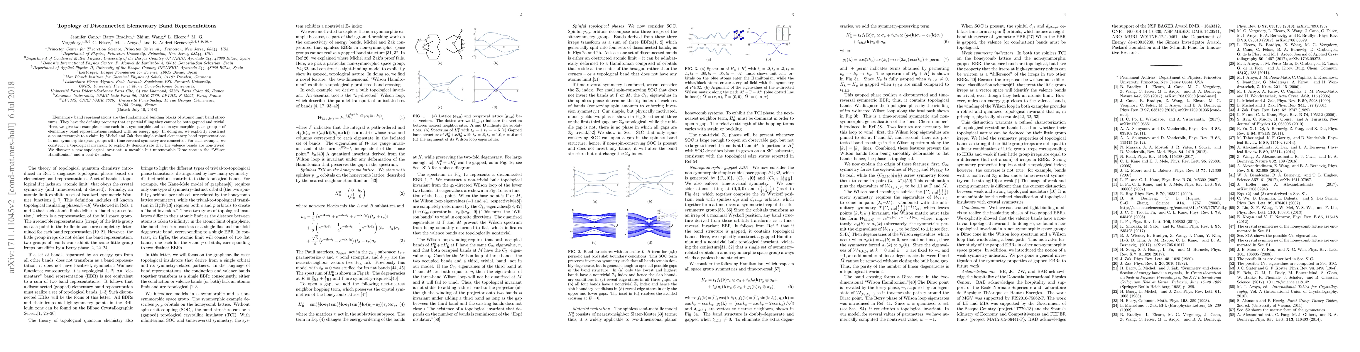 Elementary band representations are the fundamental building blocks of atomic limit band structures. They have the defining property that at partial filling they cannot be both gapped and trivial. Here, we give two examples -- one each in a symmorphic and a non-symmorphic space group -- of elementary band representations realized with an energy gap. In doing so, we explicitly construct a counterexample to a claim by Michel and Zak that single-valued elementary band representations in non-symmorphic space groups with time-reversal symmetry are connected. For each example, we construct a topological invariant to explicitly demonstrate that the valence bands are non-trivial. We discover a new topological invariant: a movable but unremovable Dirac cone in the "Wilson Hamiltonian" and a bent-Z2 index.