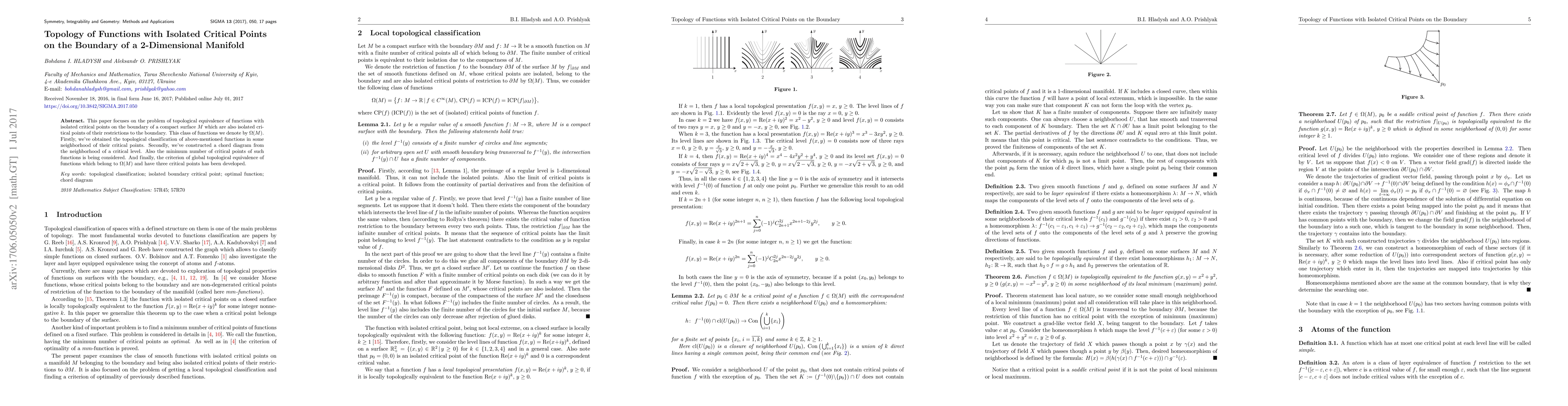 This paper classifies functions with isolated critical points on the boundary of a compact 2-dimensional manifold, establishing a topological equivalence criterion for such functions and determining the minimum number of critical points. It also develops a method for constructing chord diagrams from critical level neighborhoods.