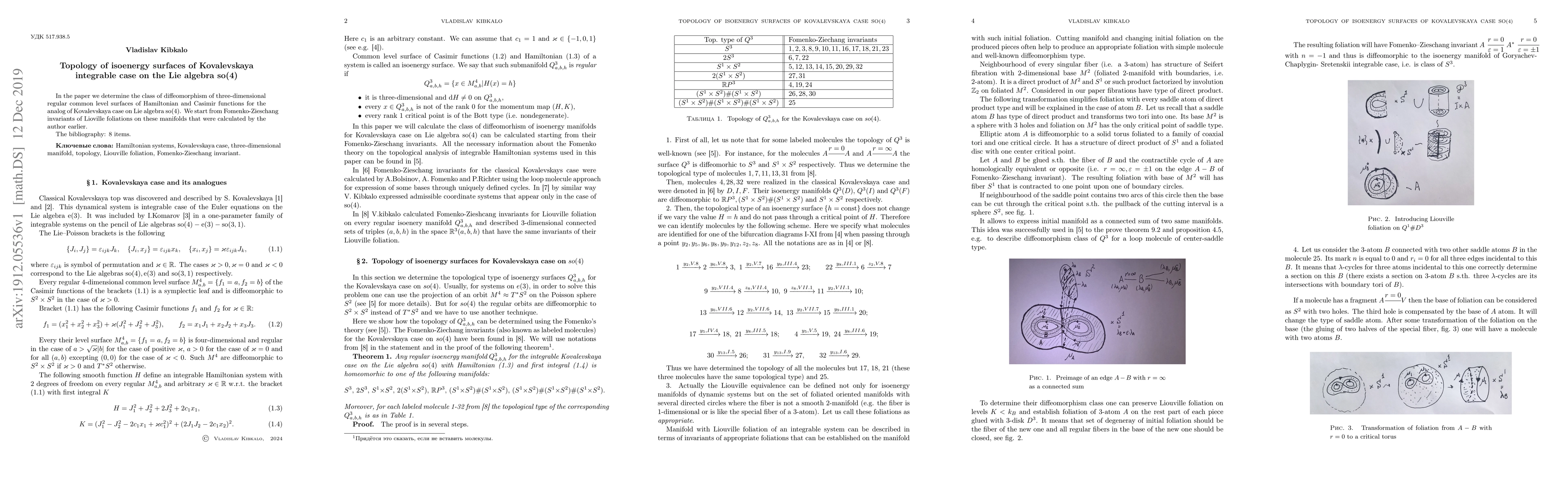 In the paper we determine the class of diffeomorphism of three-dimensional regular common level surfaces of Hamiltonian and Casimir functions for the analog of Kovalevskaya case on Lie algebra $\textrm{so}(4)$. We start from Fomenko-Zieschang invariants of Lioville foliations on these manifolds that were calculated by the author earlier.