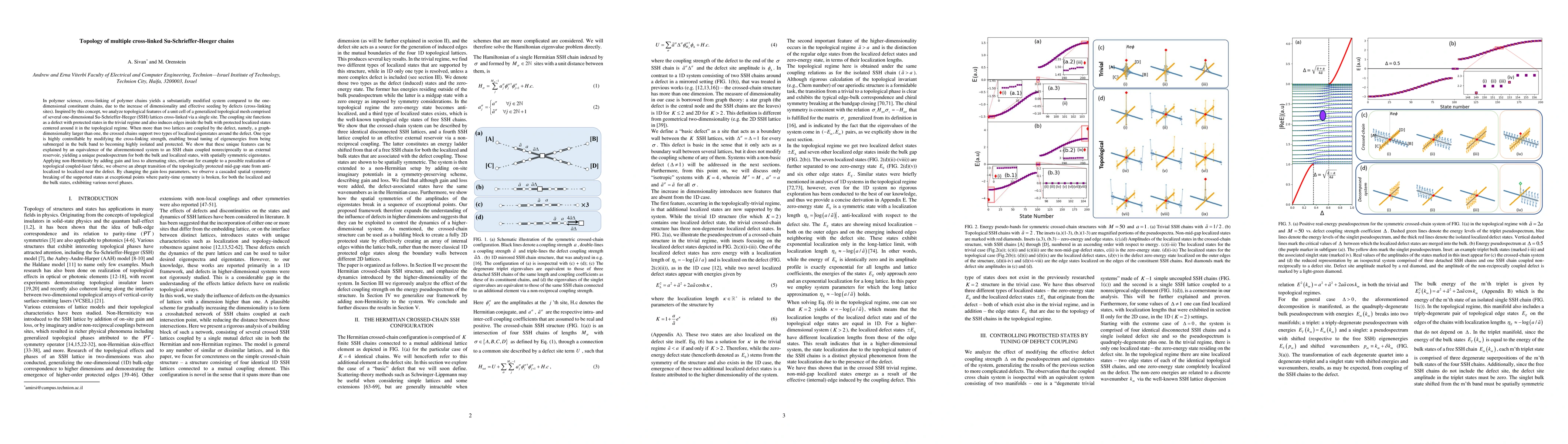 In polymer science, cross-linking of polymer chains yields a substantially modified system compared to the one-dimensional constituent chains, due to the increase of dimensionality and effective seeding by defects (cross-linking sites). Inspired by this concept, we analyze topological features of a unit cell of a generalized topological mesh comprised of several one-dimensional Su-Schrieffer-Heeger (SSH) lattices cross-linked via a single site. The coupling site functions as a defect with protected states in the trivial regime and also induces edges inside the bulk with protected localized states centered around it in the topological regime. When more than two lattices are coupled by the defect, namely, a graph-dimensionality larger than one, the crossed chains support two types of localized eigenstates around the defect. One type is highly controllable by modifying the cross-linking strength, enabling broad tuning of eigenenergies from being submerged in the bulk band to becoming highly isolated and protected. We show that these unique features can be explained by an equivalence of the aforementioned system to an SSH chain coupled nonreciprocally to an external reservoir, yielding a unique pseudospectrum for both the bulk and localized states, with spatially symmetric eigenstates. Applying non-Hermiticity by adding gain and loss to alternating sites, relevant for example to a possible realization of topological coupled-laser fabric, we observe an abrupt transition of the topologically protected mid-gap state from anti-localized to localized near the defect. By changing the gain-loss parameters, we observe a cascaded spatial symmetry breaking of the supported states at exceptional points where parity-time symmetry is broken, for both the localized and the bulk states, exhibiting various novel phases.