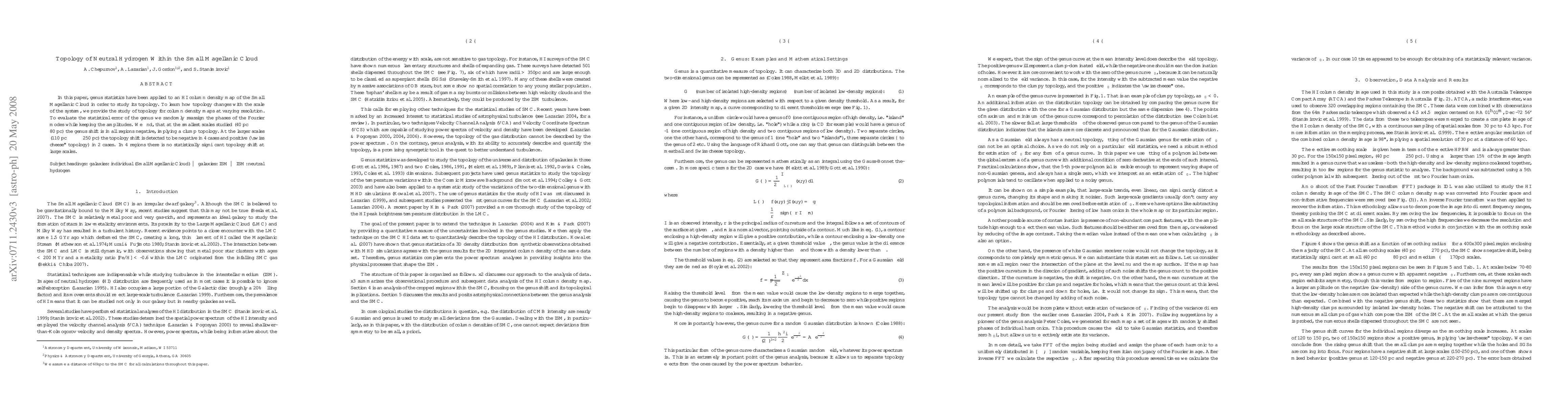 This paper uses genus statistics on HI column density maps of the Small Magellanic Cloud to study its topology at different resolutions. At small scales, the topology is predominantly clumpy, while at larger scales, it varies between clumpy and "swiss cheese" topologies, with some regions showing no significant change.
