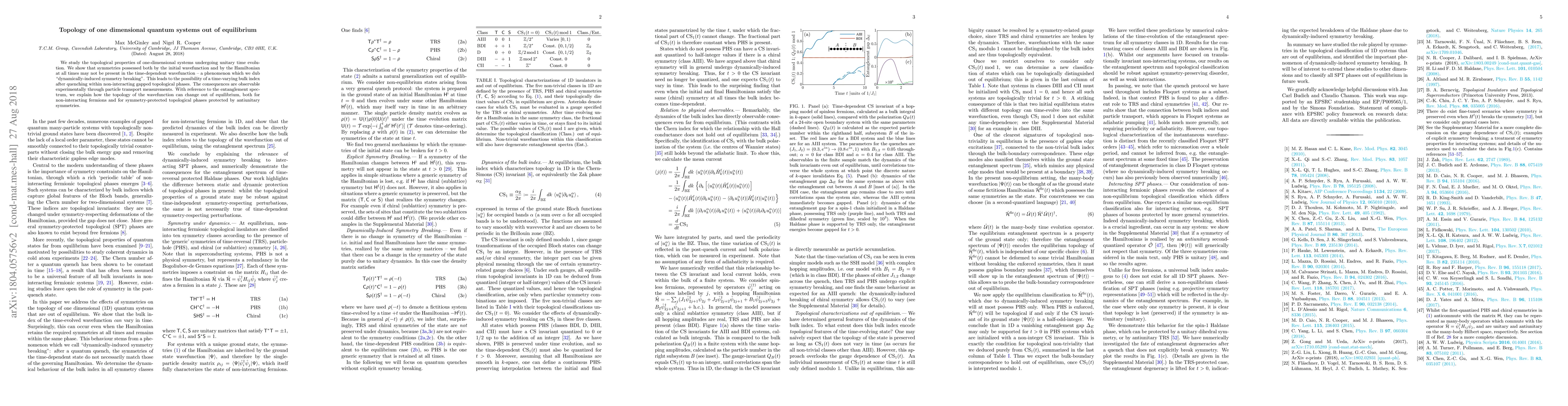 This paper investigates the topological properties of one-dimensional quantum systems under unitary time evolution, revealing "dynamically-induced symmetry breaking" and a time-varying bulk index after quenching. Experimental consequences include changes in particle transport and entanglement spectrum, applicable to both non-interacting fermions and symmetry-protected topological phases.