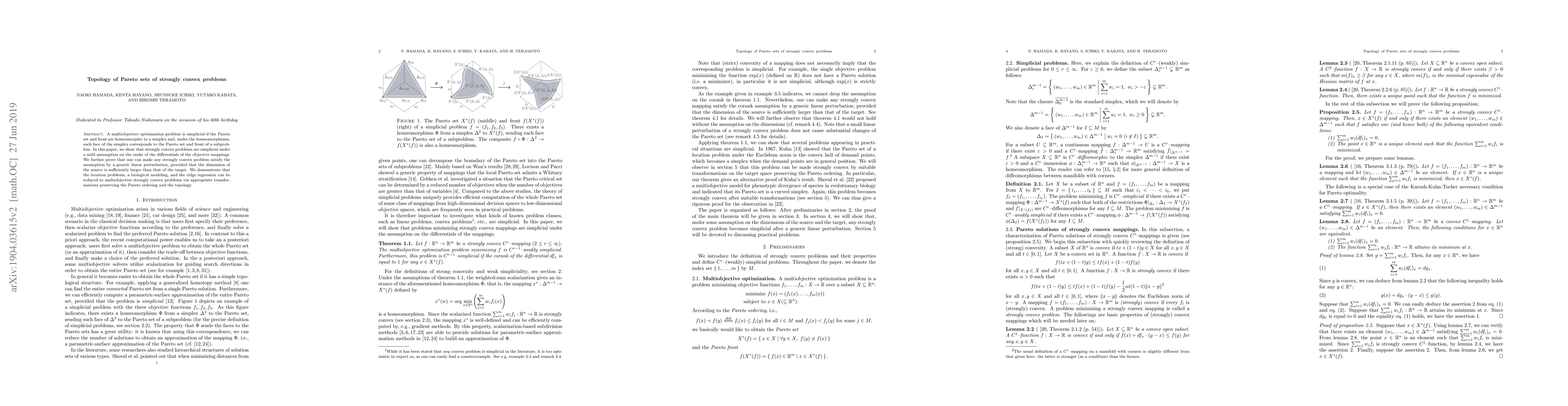 This paper explores the topology of Pareto sets in strongly convex multiobjective optimization problems, proving that they are simplicial under certain conditions. It also demonstrates that any strongly convex problem can be perturbed to meet these conditions when the dimension of the source is sufficiently larger than the target.