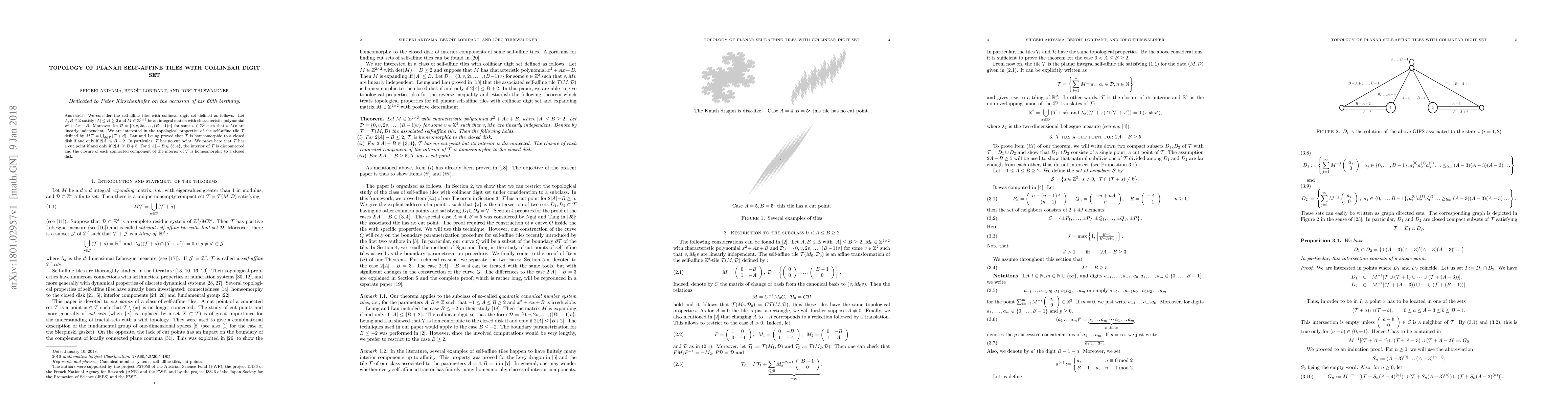 The paper analyzes self-affine tiles using a collinear digit set, focusing on topological properties and homeomorphisms.