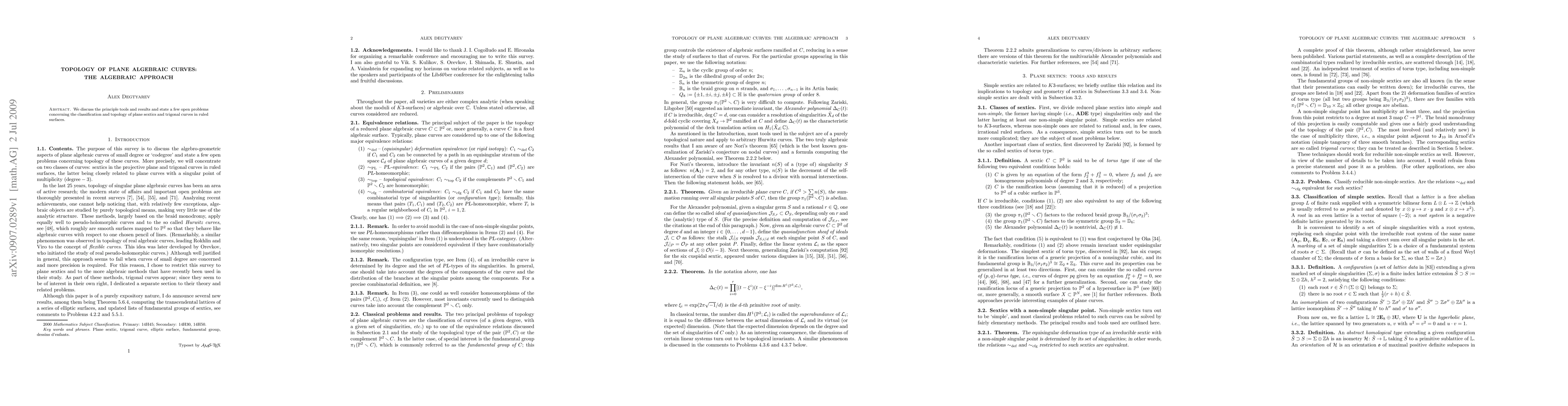 This paper discusses classification and topology of plane algebraic curves, focusing on plane sextics and trigonal curves in ruled surfaces, highlighting key tools and open problems.