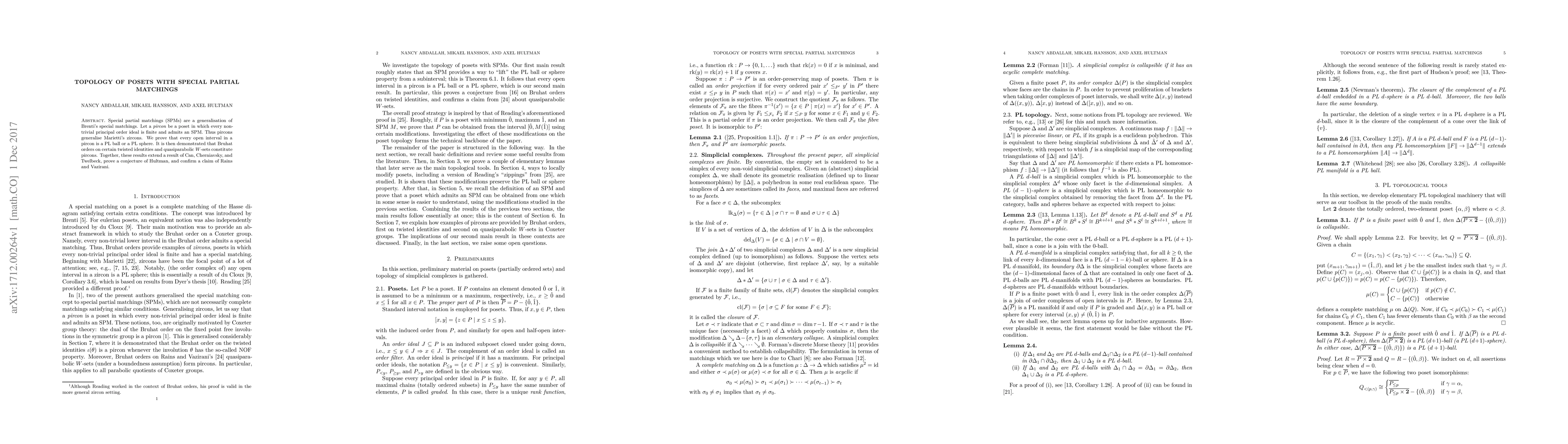 This paper studies posets called pircons, which generalize zircons and have special partial matchings. It proves that every open interval in a pircon is topologically a PL ball or a PL sphere, and applies these results to Bruhat orders and quasiparabolic $W$-sets, extending previous results and confirming conjectures.