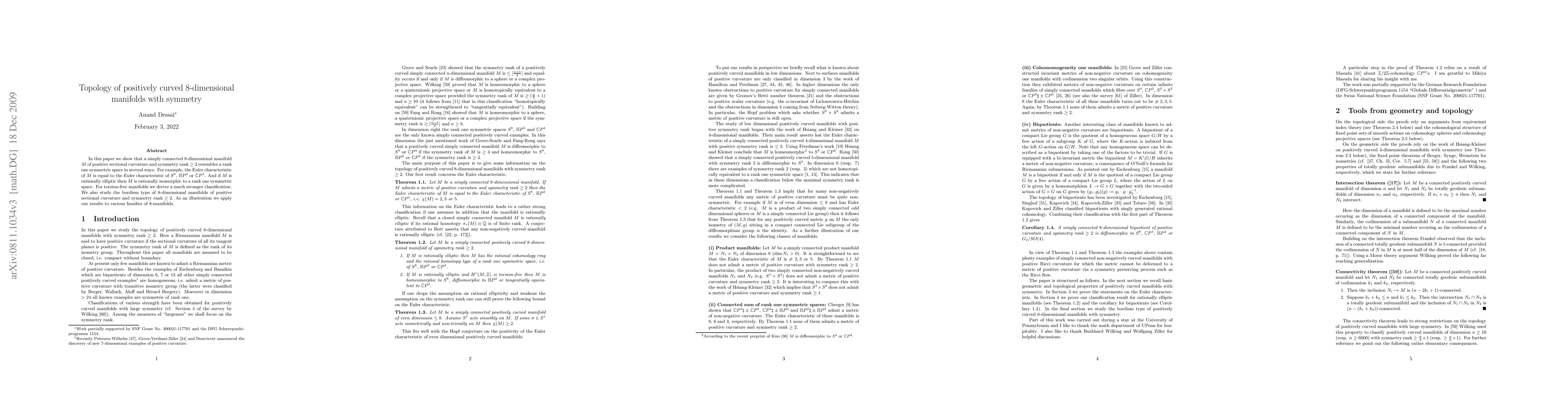Researchers classify 8-dimensional manifolds with positive sectional curvature and symmetry rank >= 2 as similar to symmetric spaces, leading to stronger classification of torsion-free manifolds and new insights into their bordism types.