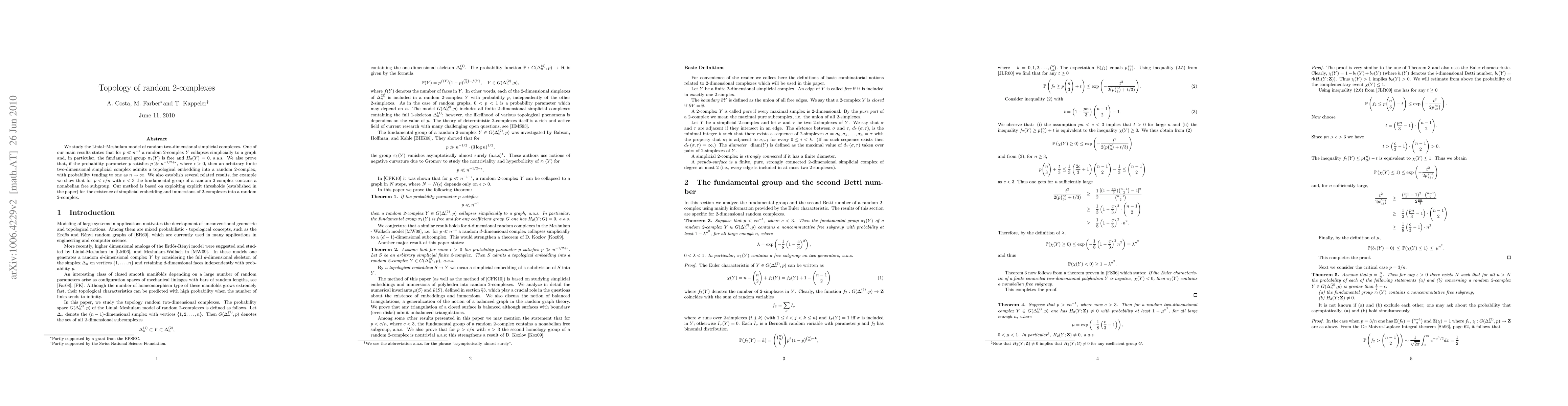 A probabilistic approach was used to analyze the properties of random 2-complexes