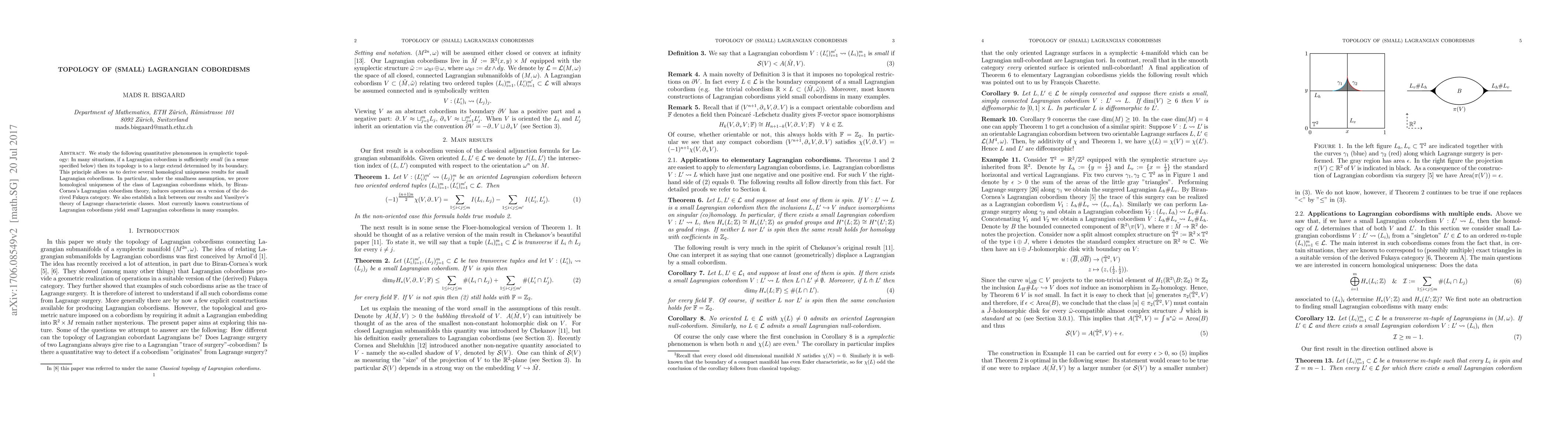 This paper explores how the topology of small Lagrangian cobordisms is largely determined by their boundaries, leading to homological uniqueness results. It also connects these findings with Vassilyev's theory of Lagrange characteristic classes and Biran-Cornea's Lagrangian cobordism operations on the derived Fukaya category.