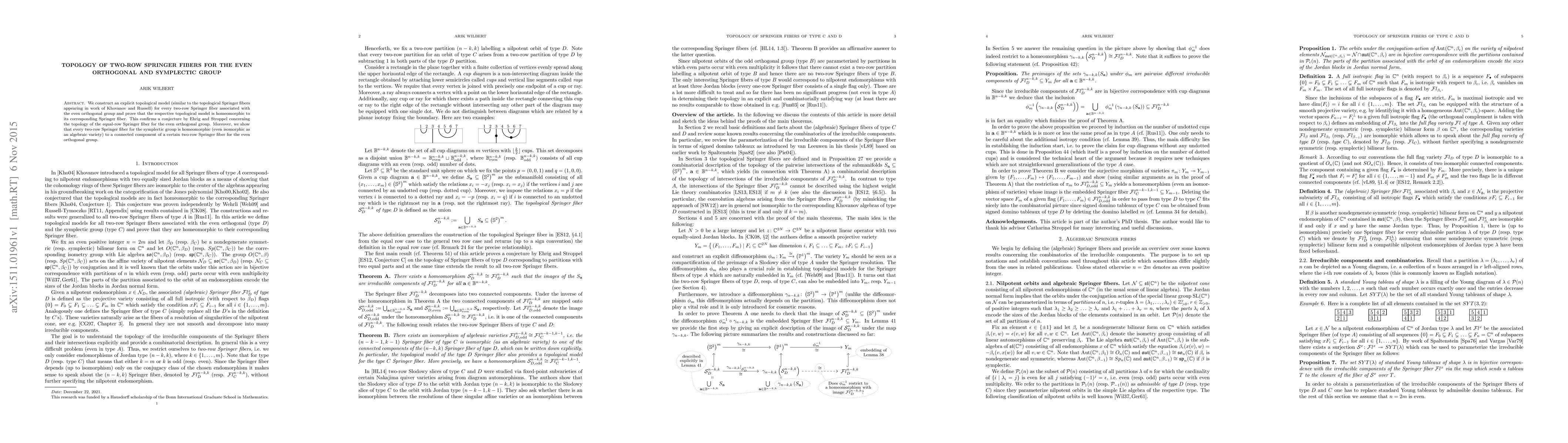 This paper constructs a topological model for two-row Springer fibers linked to the even orthogonal and symplectic groups, proving their homeomorphism to corresponding algebraic varieties. It confirms a conjecture for the even orthogonal group and shows symplectic fibers are isomorphic to components of orthogonal fibers.