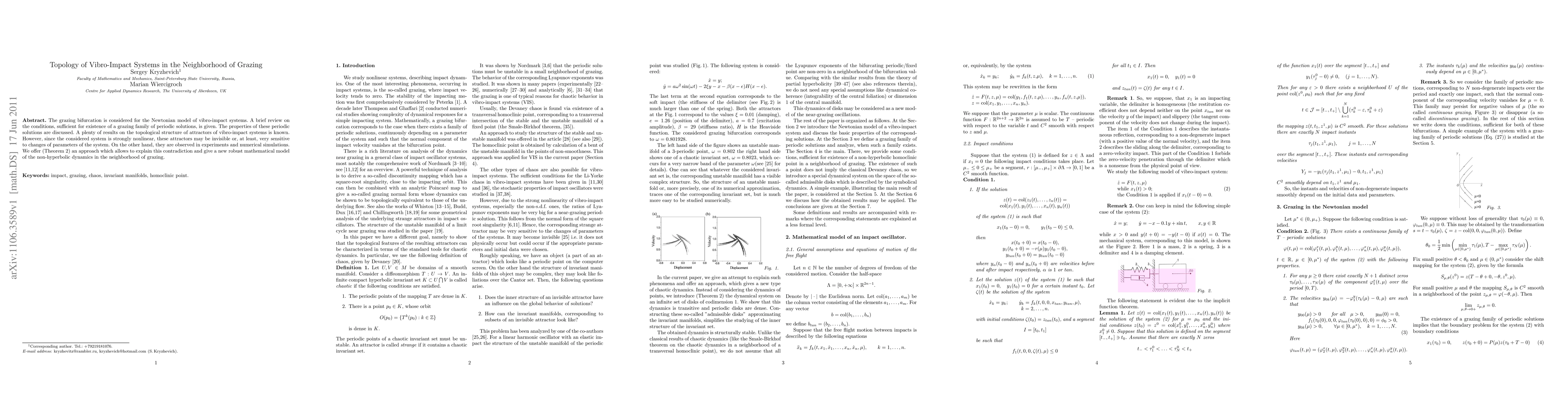 The grazing bifurcation is considered for the Newtonian model of vibro-impact systems. A brief review on the conditions, sufficient for existence of a grazing family of periodic solutions, is given. The properties of these periodic solutions are discussed. A plenty of results on the topological structure of attractors of vibro-impact systems is known. However, since the considered system is strongly nonlinear, these attractors may be invisible or, at least, very sensitive to changes of parameters of the system. On the other hand, they are observed in experiments and numerical simulations. We offer (Theorem 2) an approach which allows to explain this contradiction and give a new robust mathematical model of the non-hyperbolic dynamics in the neighborhood of grazing.